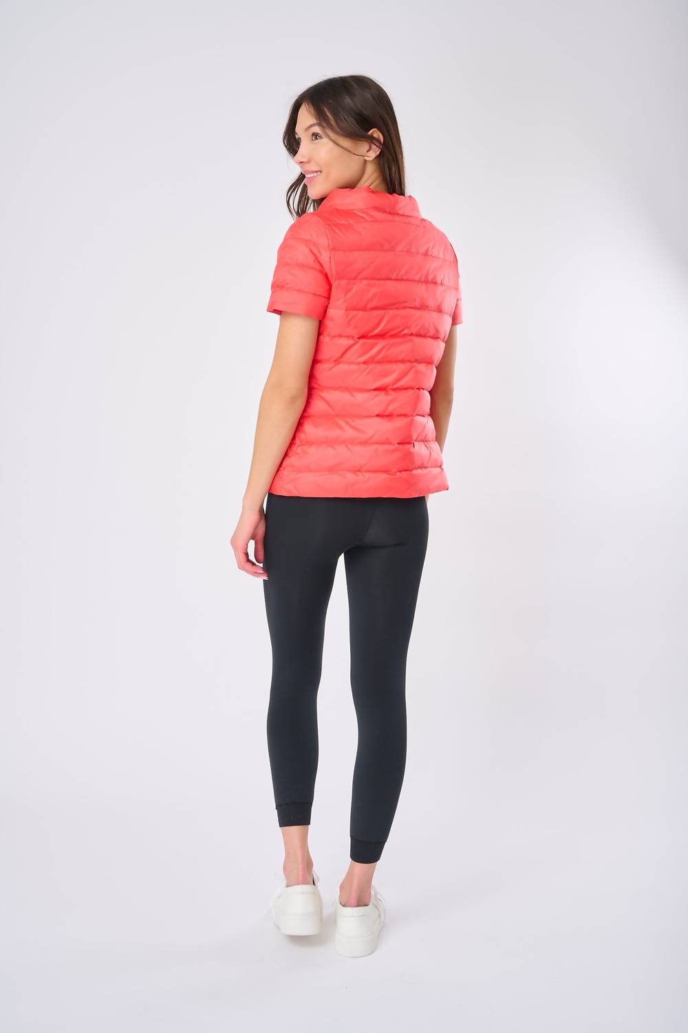Throw this vest over an all black outfit for a perfectly polished look. Down-filled design. Featuring a mockneck and short sleeves, this coral jacket is ideal for versatile styling. Convenient zip closure and practical pockets. Dry clean only.