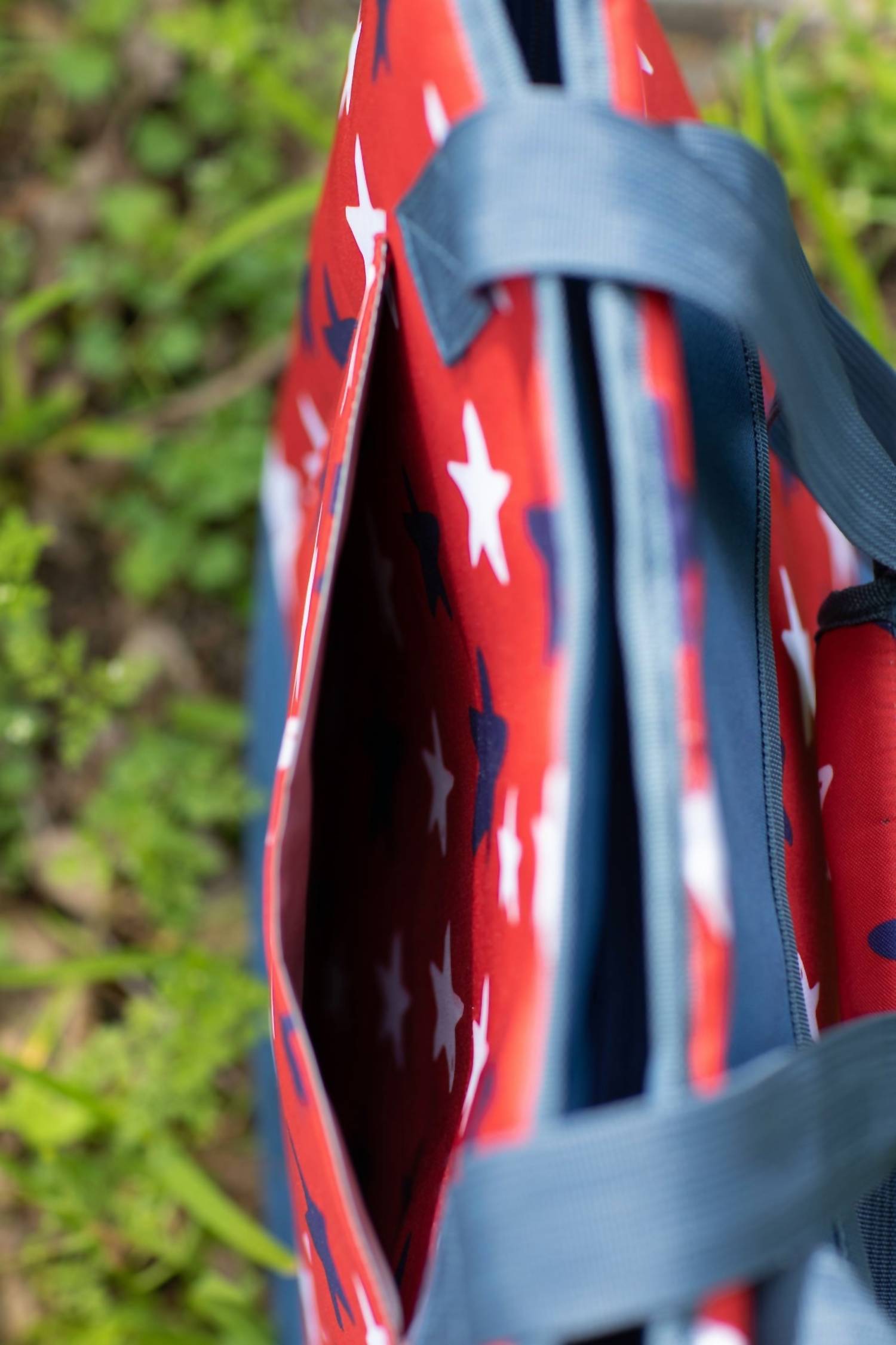 The carry-all tote bag of the season. Get in vacation mode with this perfectly sized tote bag that is the perfect accessory for beach days, pool parties, or sunset dinners. Introducing the Stars and Stripes Cooler Bag by JadyK, a vibrant red tote ideal for outdoor adventures. With a capacity to hold up to 8.5 gallons, this cooler ensures your refreshments are ready for a day at the park or beach. Its spacious dimensions of 18 x 21 x 7.5 inches make it perfect for carrying drinks and snacks. Crafted with quality, this patriotic-themed bag is both functional and stylish.