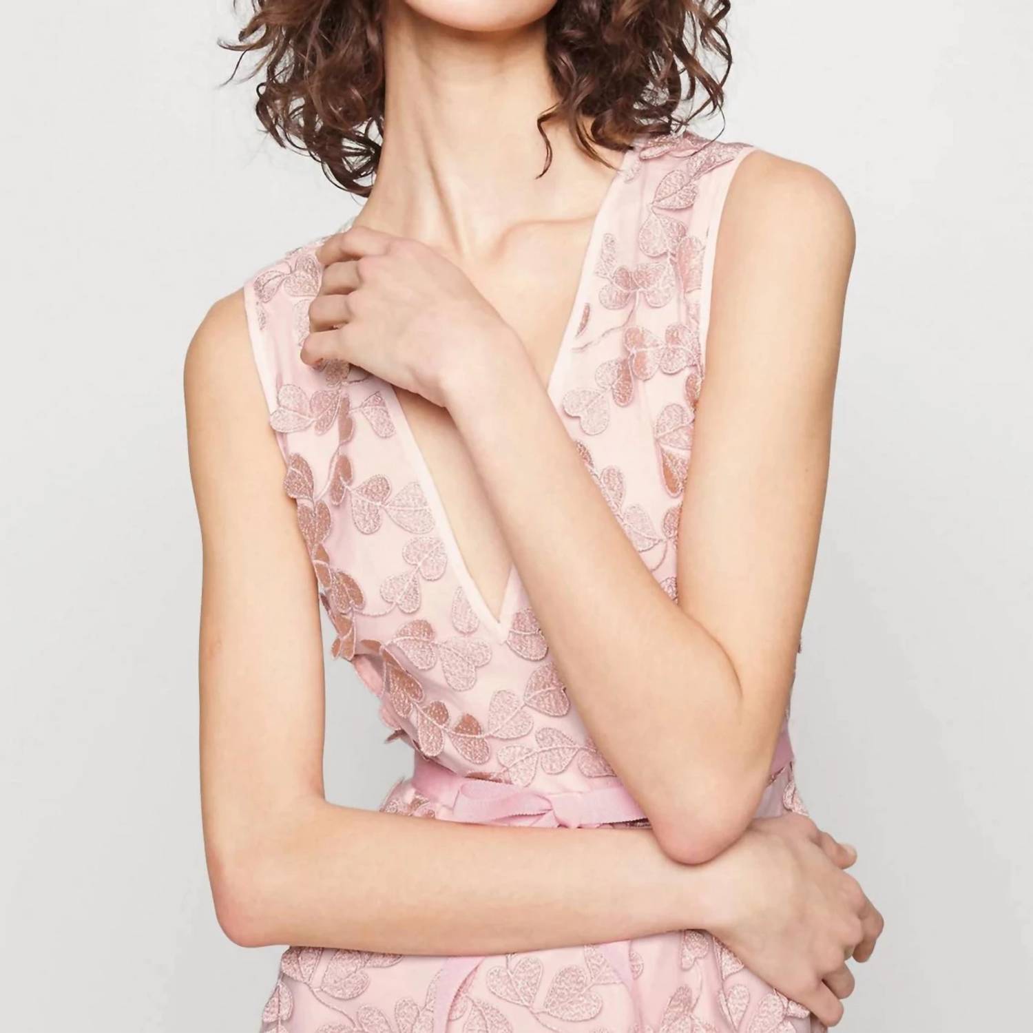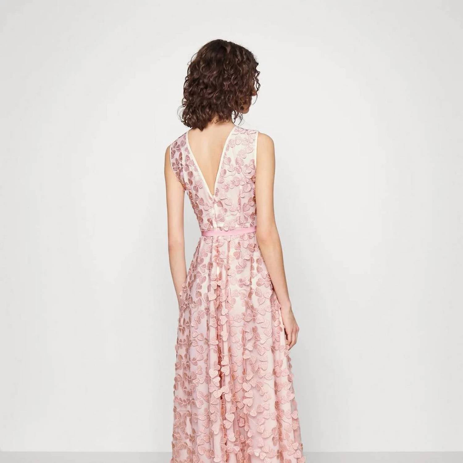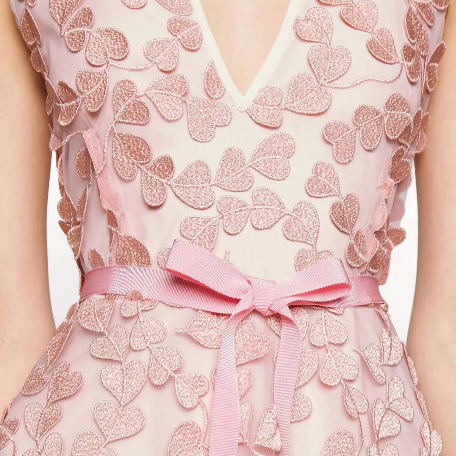 The perfect length dress does exist. Introducing the Balza Midi Dress by MARELLA in a stunning powder pink, designed to turn heads at any cocktail party. This sleeveless dress features a flattering V-neckline and a chic grosgrain belt at the waist with a graceful A-line silhouette. Made in Italy with 83% polyester and 17% metallic fibers, it offers both style and comfort. Closure: Convenient zip closure at the back. Care: Dry clean only.