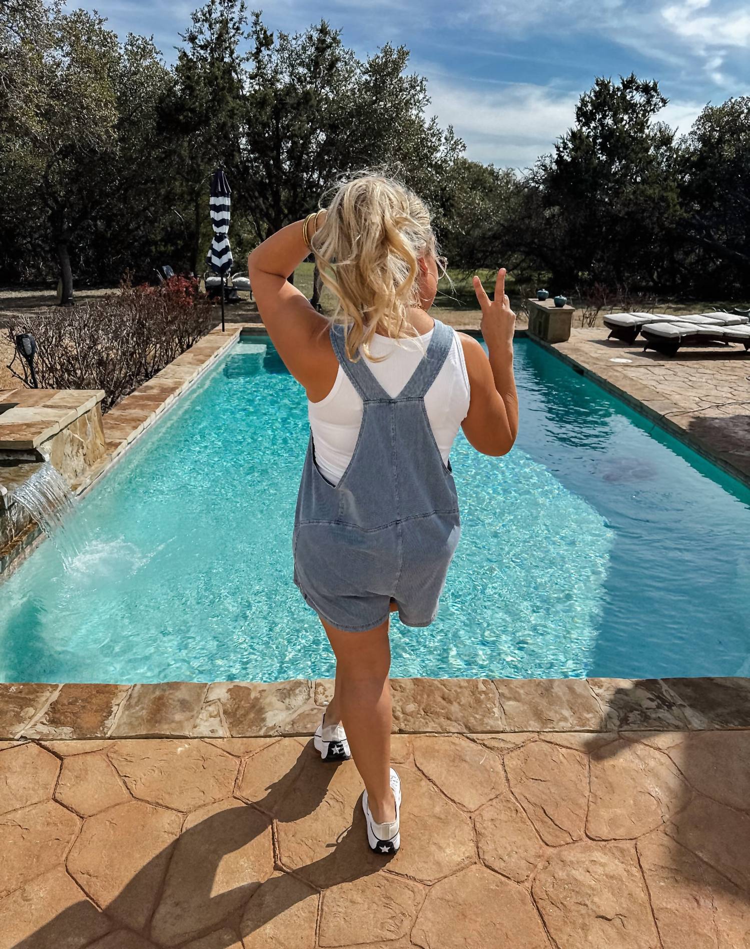 It doesn't take much for this one piece to look effortlessly cool. Add some statement jewelry to dress it up, or throw on some sneakers for a more casual vibe. Experience effortless style with the Daydream Denim Romper by Blakely, an essential piece for your summer wardrobe. This low-rise romper, crafted from solid blue denim, features convenient pockets and a pull-on closure for easy wear. Ideal for vacations and casual outings, it offers a chic and timeless look. Pair it with your favorite accessories for an effortless, yet polished ensemble.