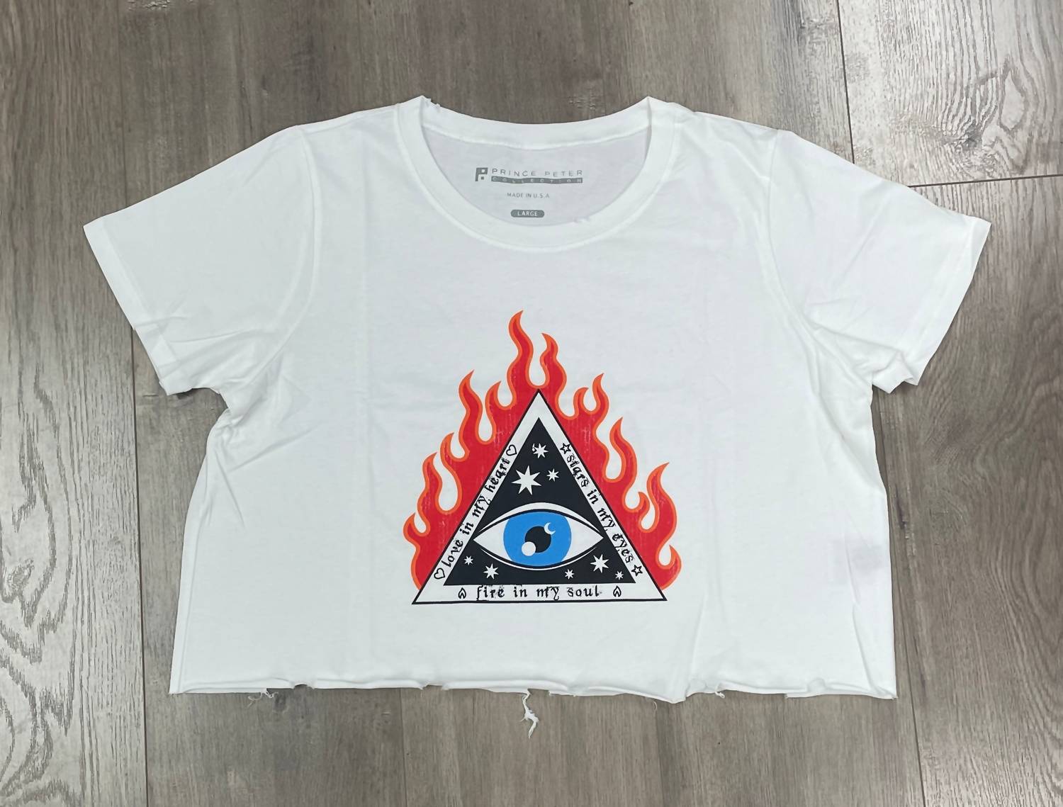 Fit: Distressed Crop Top. Made from 100%, custom cotton, with a perfect hand feel and worn in look. About 17" from shoulder to hem.