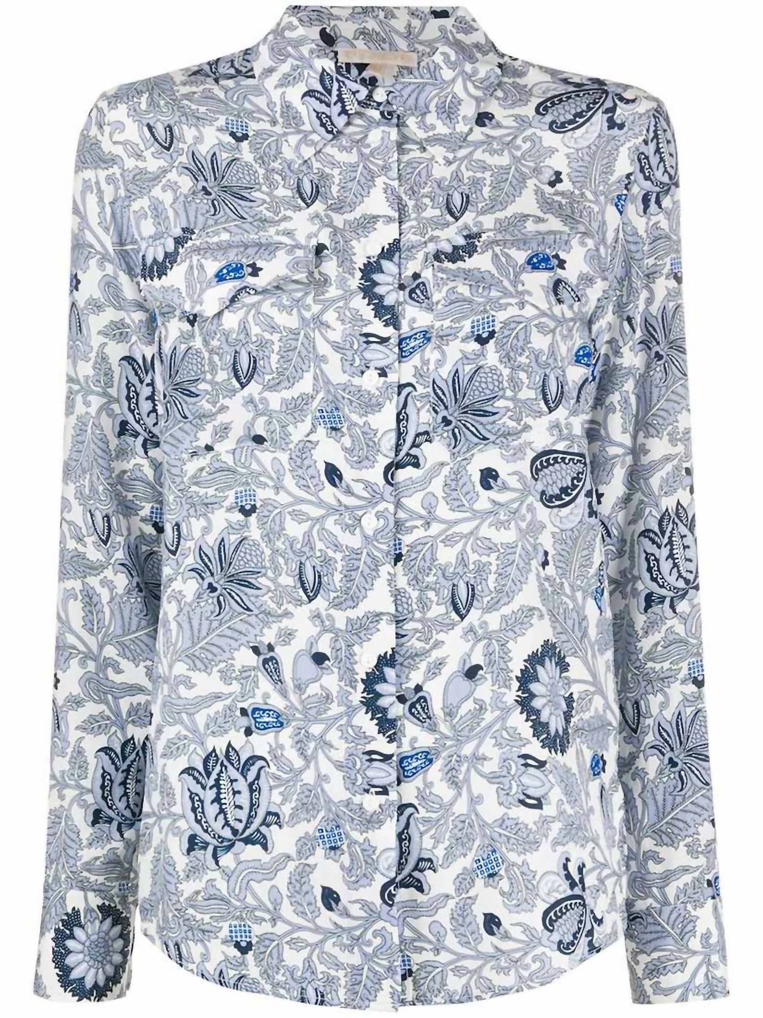 A versatile blouse that works from desk to dinner! The PAISLEY Button Shirt from GOLD HAWK is an essential you'll want to layer up!  Perfect lightweight silk with front button and easy fit. Beautiful blue paisley design that looks fabulous with denim, create your own look year round. 100% silk. Cold Wash