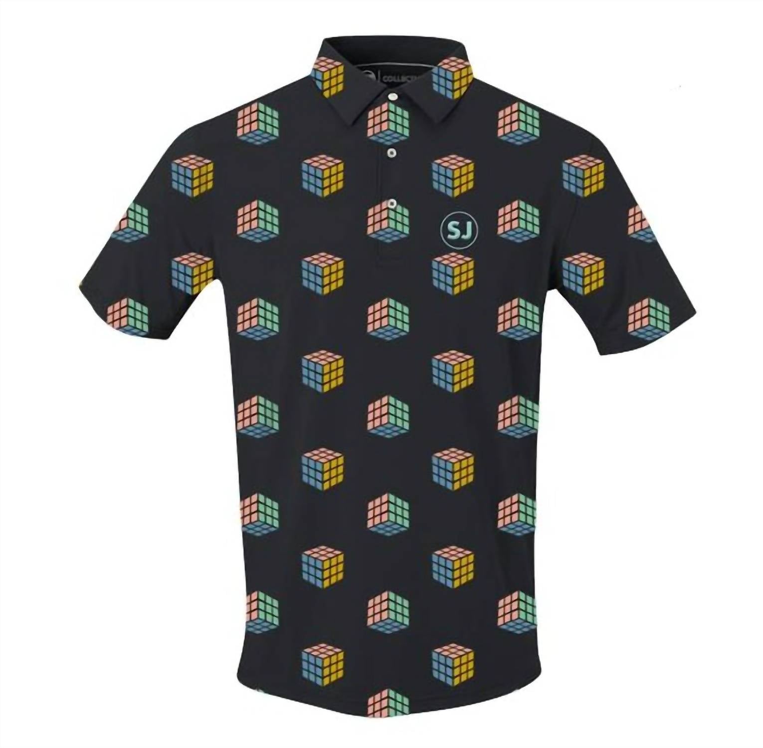 Elevate your golf attire with the SwingJuice Men's Golf Gamescape Polo, perfect for both on and off the course. This black, stylish short sleeve polo features a playful gamescape design and an uneven vented hem for comfort. Crafted from 92% micro poly and 8% spandex, it includes a three-button closure and a no-curl self-collar. Enjoy UPF 50+ sun protection and natural odor resistance from the bamboo charcoal-infused material. Care is simple with machine wash cold and tumble dry low instructions.