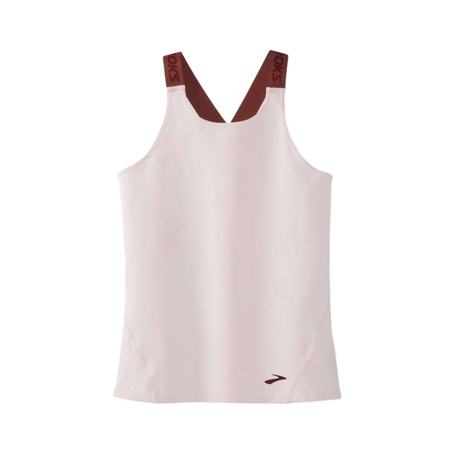 Introducing the Women's Pick-Up Tank Top by BROOKS, designed to elevate your run with style and performance. This sleeveless, fitted tank is crafted for unrestricted movement and quick drying, making it ideal for hot weather training and layering. Closure: Pull on. Care instructions: Machine wash and tumble dry. Featuring a flattering scoopneck in a chic rosewater/terracotta color, it promises a breathable and flexible fit for all-day wear.