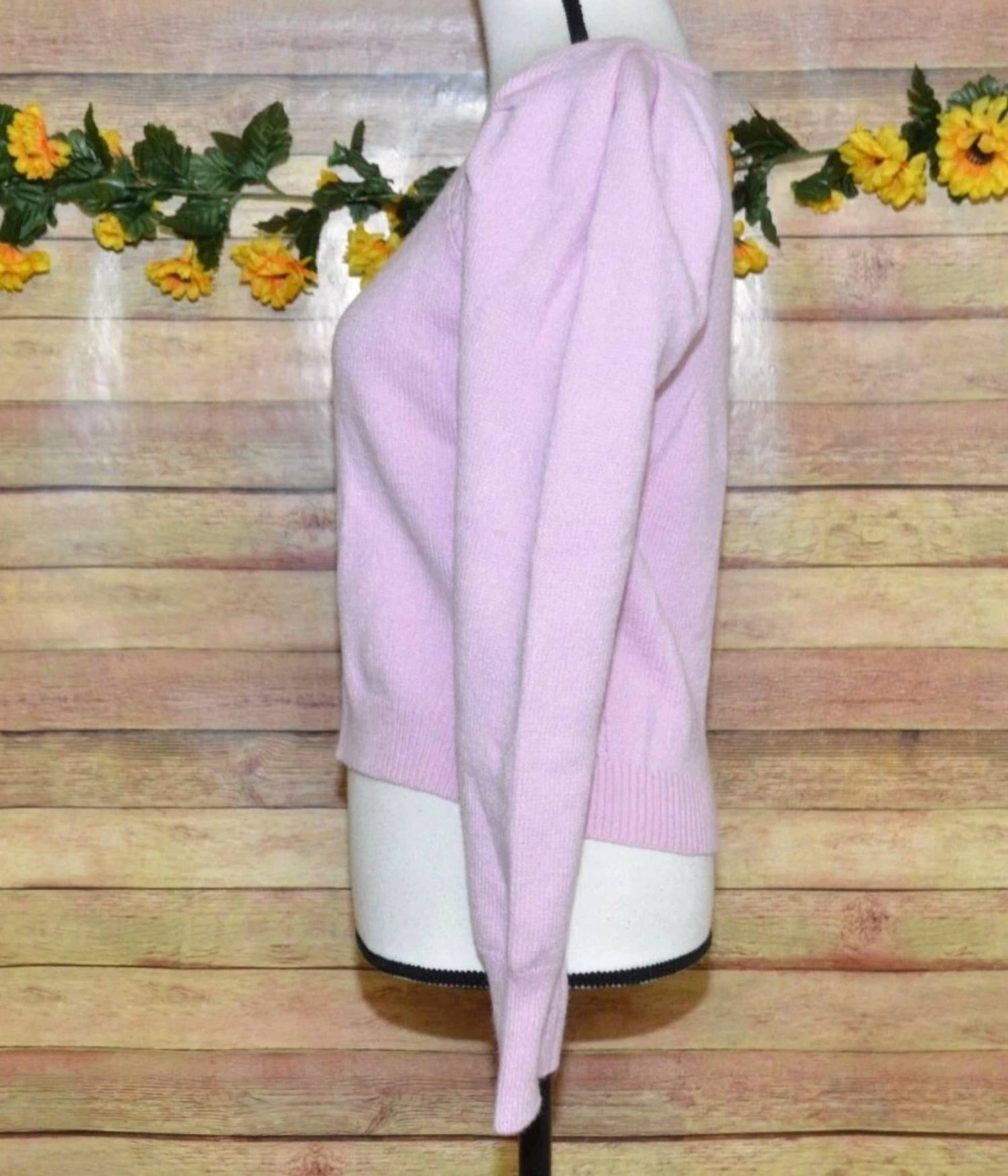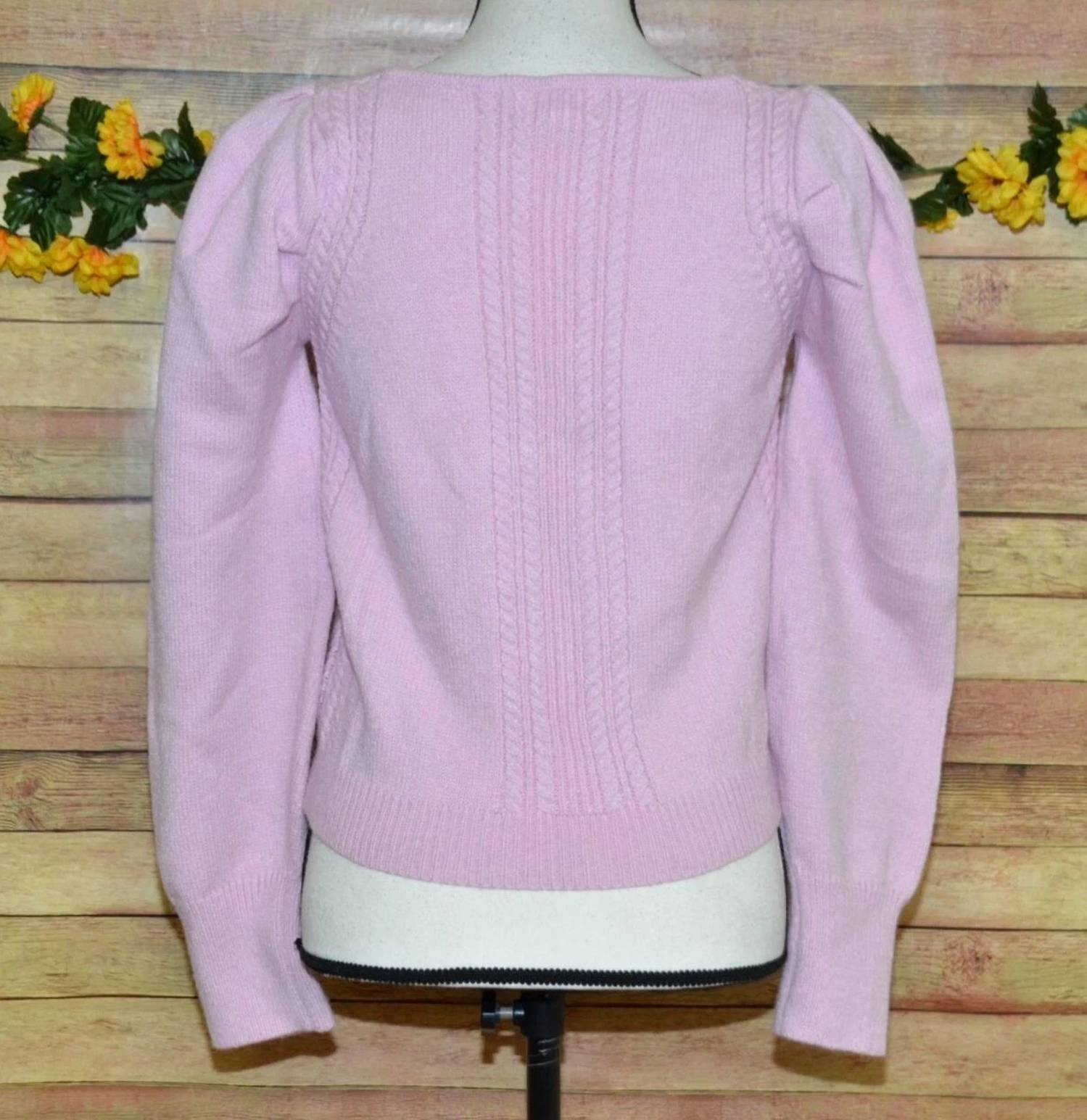 Throw this adorable cardigan over any cami or tank top. Meet the Kinley V-neck Puff Sleeve Knit Sweater by &merci, a chic addition to your wardrobe in delightful Grapefruit Pink. This sweater features long sleeves with puff shoulders and long ribbed cuffs, complemented by braid knit details for a textured look. Crafted from 100% Acrylic, it offers a semi-cropped fit with a pull-on closure. Model stats: 5'5" height, 33" bust, 26" waist, 37" hip, wears a size small.