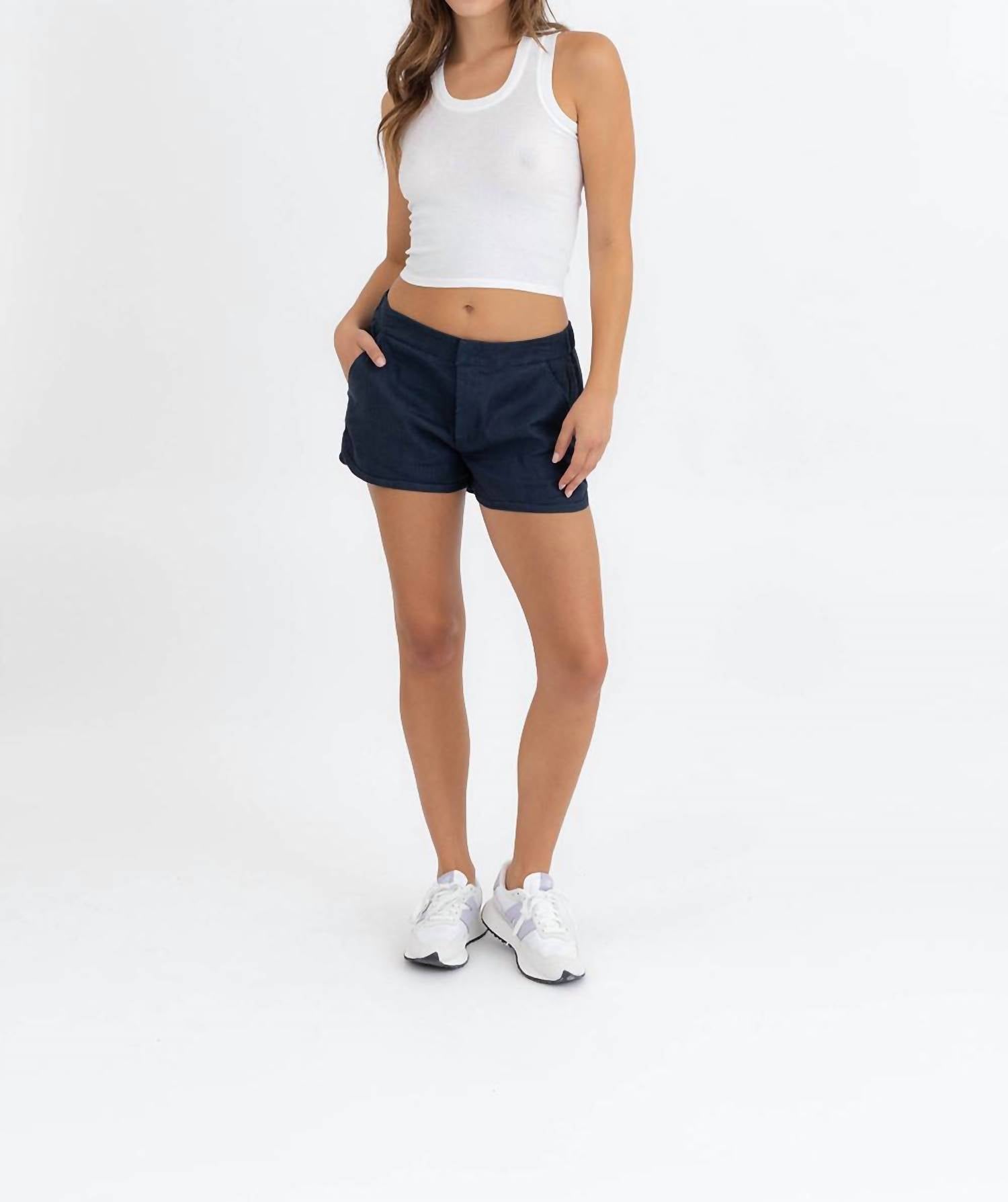 Tuck your favorite tee into these high-waist shorts for a more casual-cool feel. Designed for warm weather, these shorts are made from a lightweight blend of stretch linen and Tencel lyocell for comfort and breathability. With an athleisure-inspired look, they include a front zipper with hook-and-bar closure, an elastic waistband at the back, front slant pockets, and a trendy dolphin hem. Composed of 51% linen, 46% lyocell, and 3% spandex, they’re machine washable for hassle-free care.