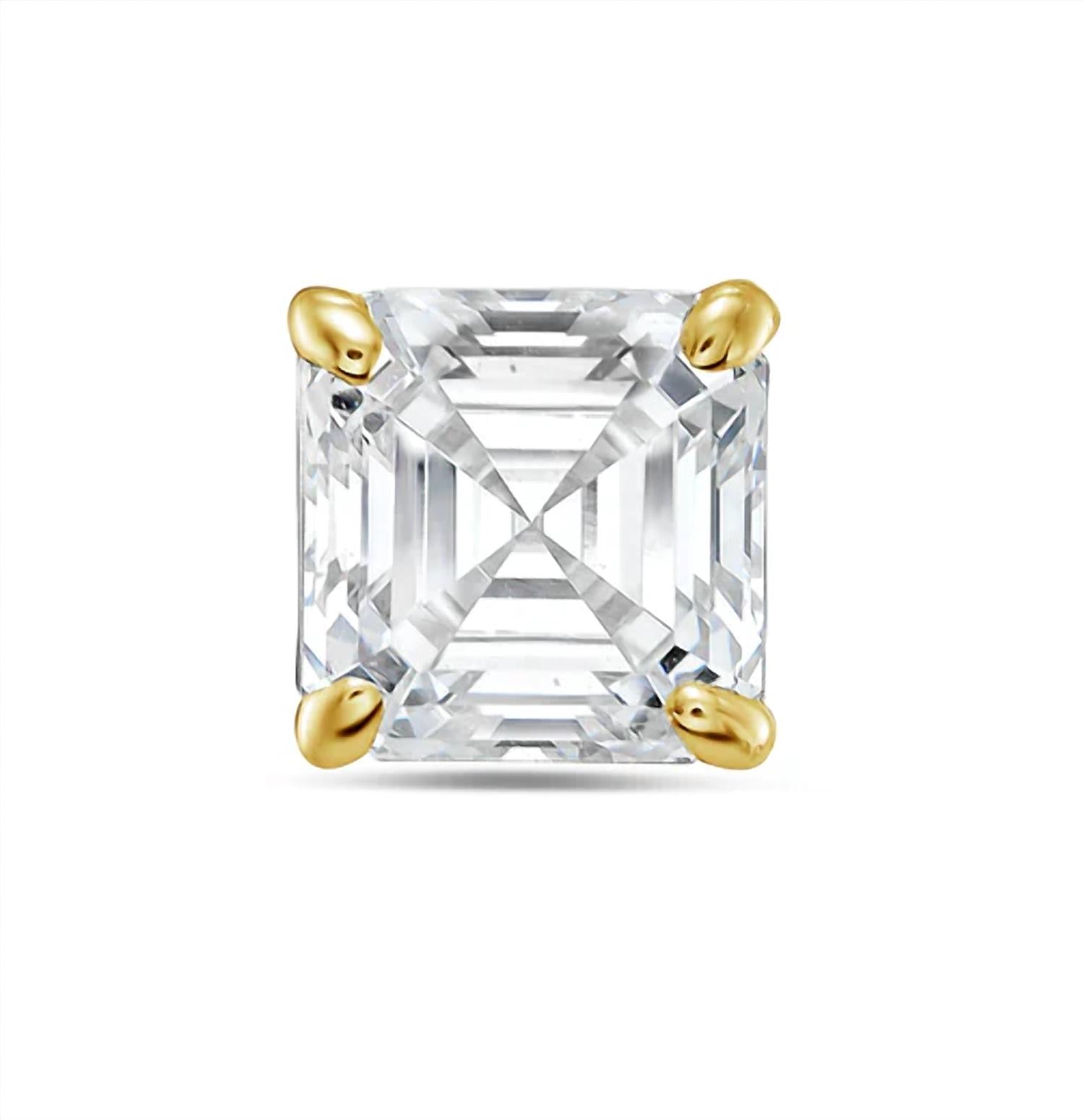 Easy and elegant earrings to complement any outfit. Discover exquisite sophistication with the 4.00 Cts Lab Grown Asscher Cut Stud Earrings by Diana M Jewels. These fine earrings feature a stunning asscher cut diamond with a DEF color grade and VS clarity, encased in a luxurious 14k yellow gold prong setting. Originating from a lab and designed for the discerning jewelry enthusiast, these studs showcase a 4-carat gemstone and secure with a classic post clasp. Ideal as a birthstone piece for April or as an everyday precious accessory.