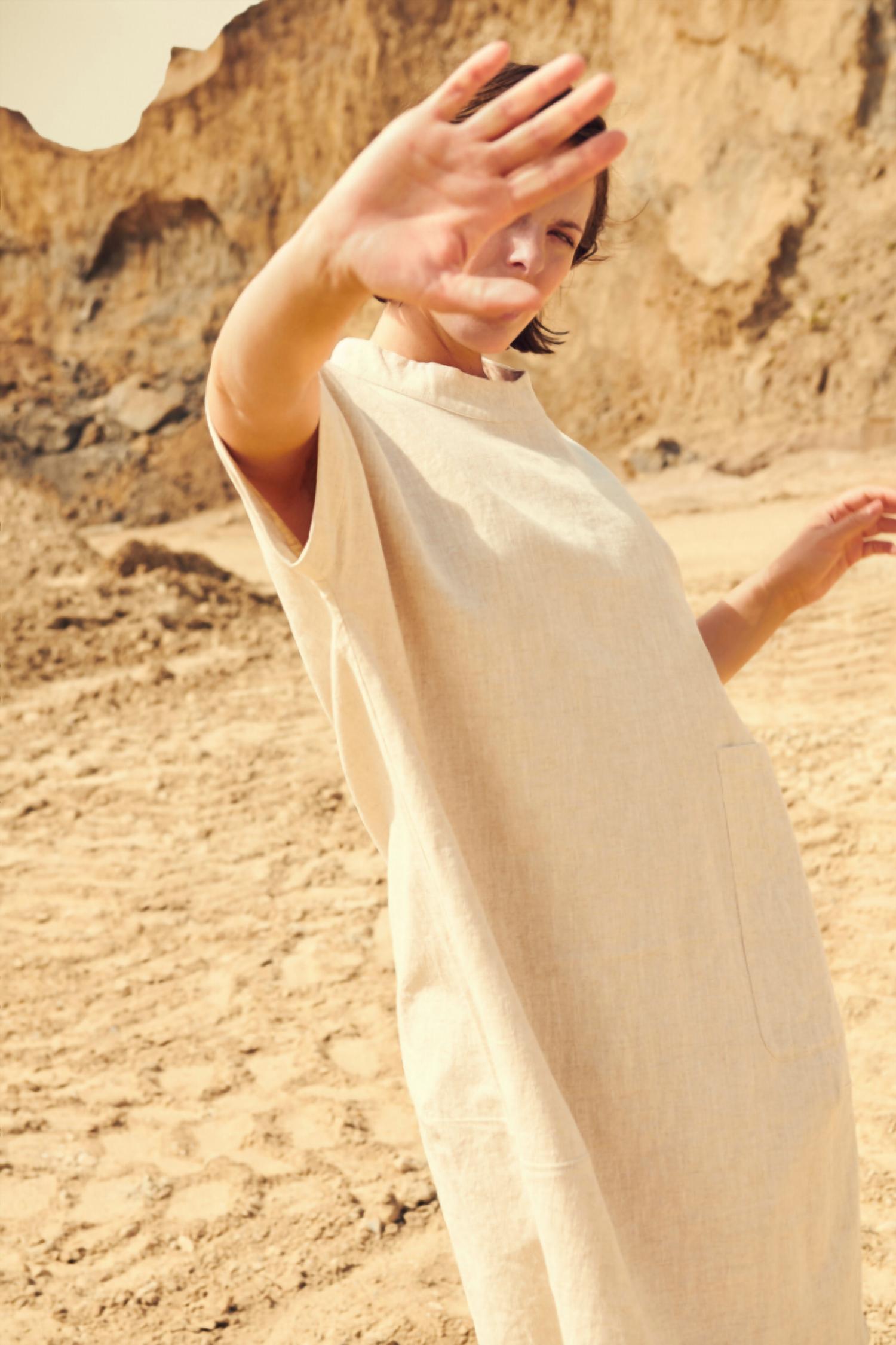 A midi dress so versatile, your options for wearing it are endless. Discover timeless elegance with the NOEN Women's Regular Midi Dress, a perfect blend of classic design and modern sophistication. This Light Taupe shift dress features a chic mockneck and short sleeves, crafted from 100% linen for breathable comfort, ideal for summer. Made with a pull-on closure and styled in a solid, effortless silhouette, it caters to those looking for both functionality and aesthetics. Machine wash.