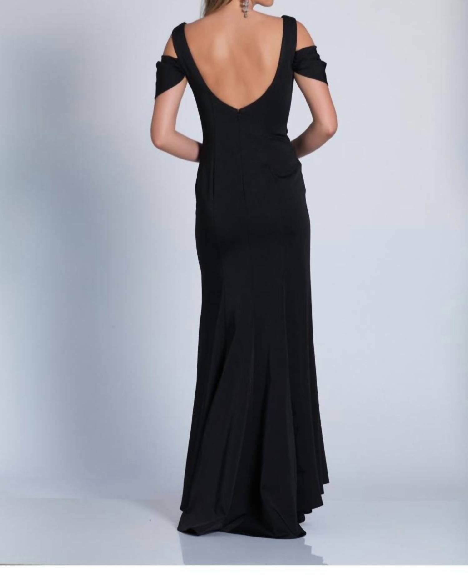 Classic black evening gown by Dave and Johnny with v neck - perfect for any formal affair, black tie, guest of wedding, or prom.