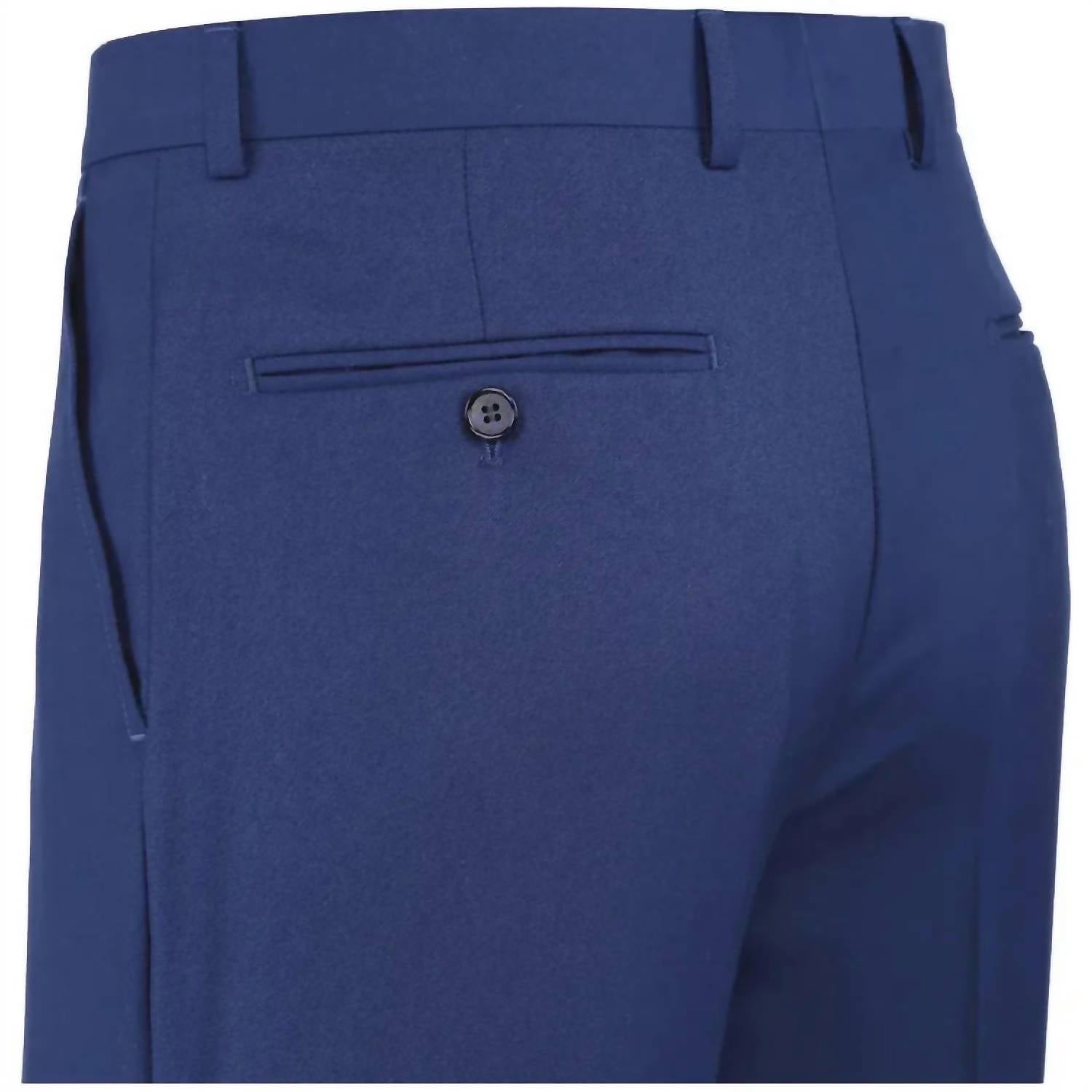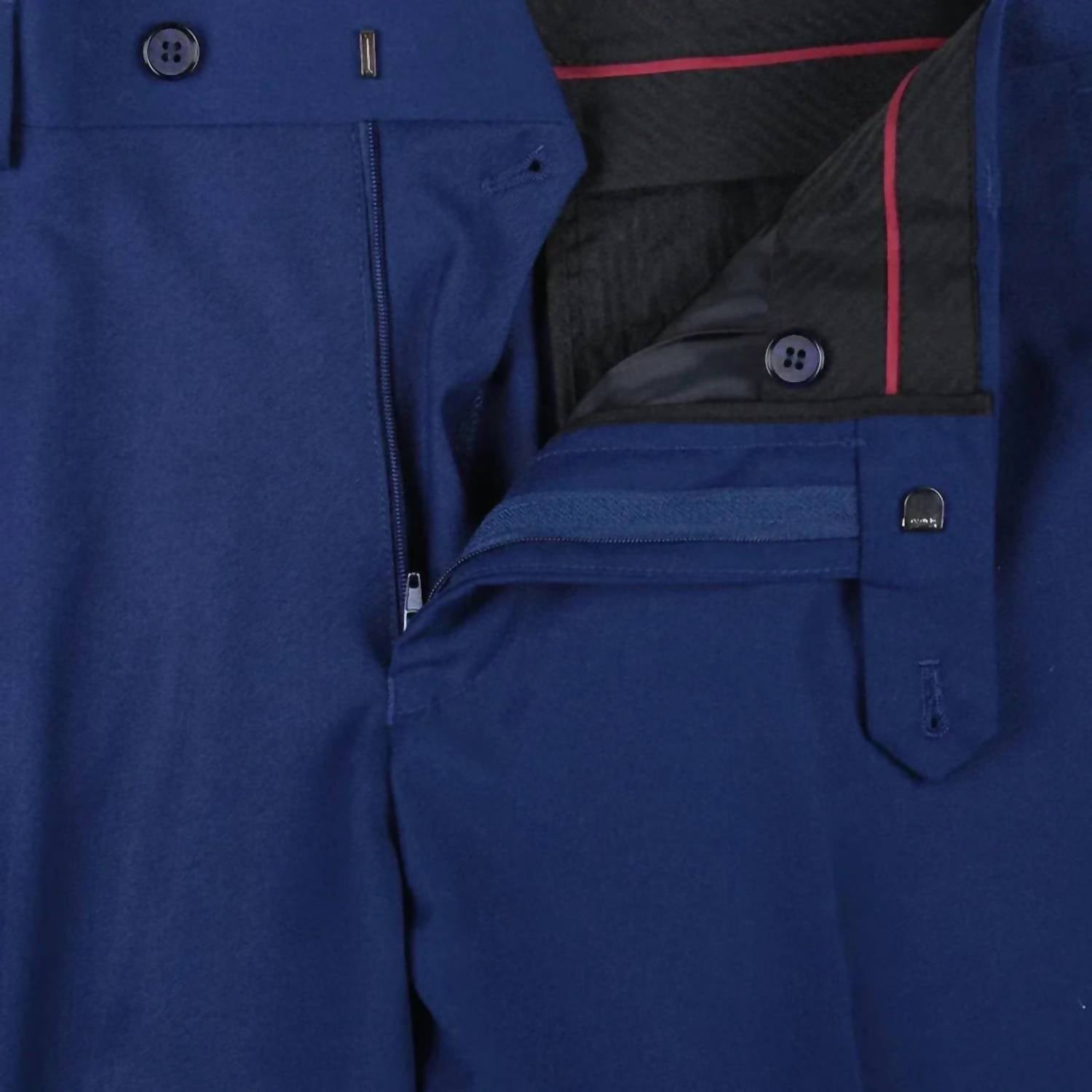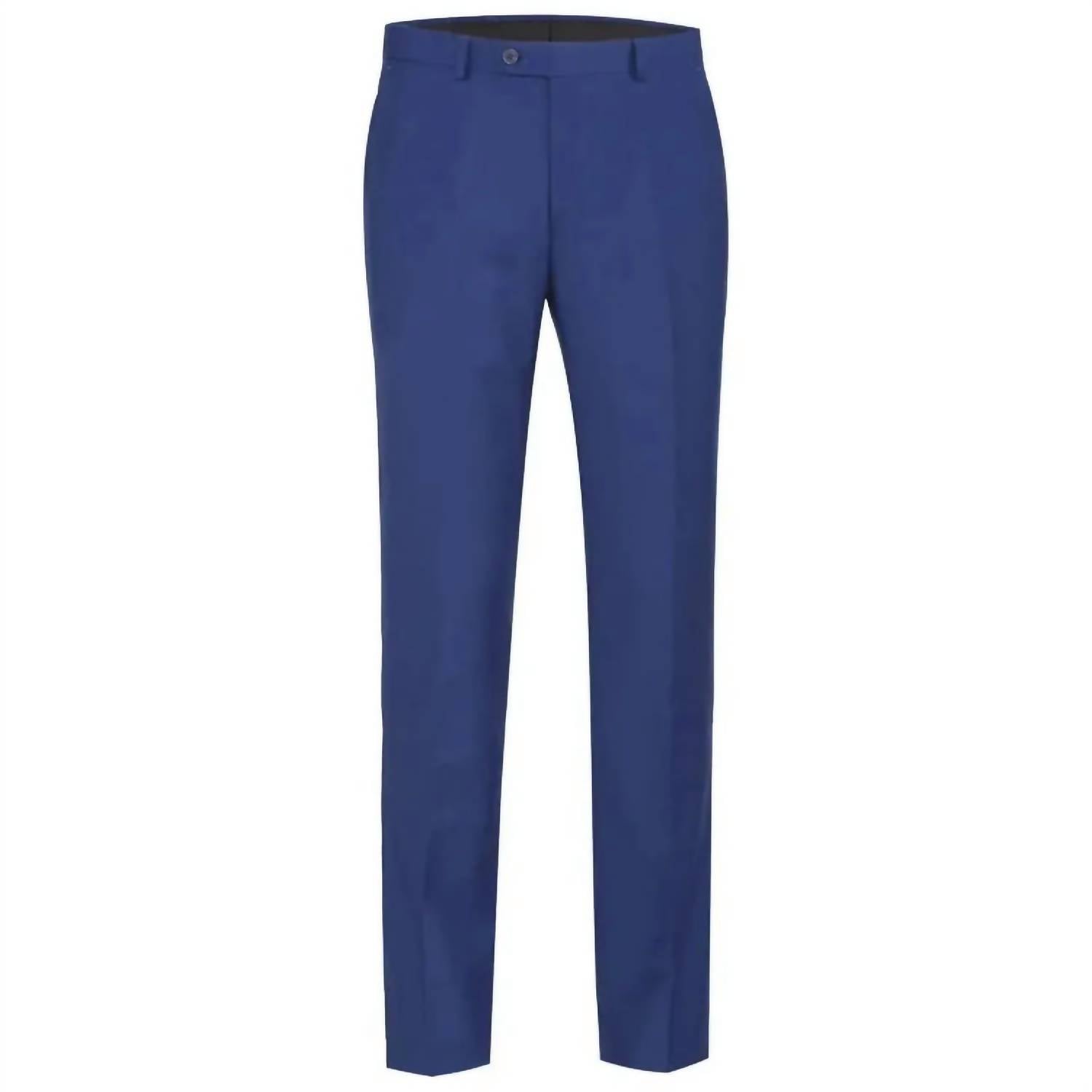 Elevate your wardrobe with the Men's Classic Slim Fit Pant by Renoir, tailored for a smart, bold silhouette. These pants in a striking cobalt/french blue feature a slim fit design with a flat front and four practical pockets. Composition: 65% polyester, 35% viscose. Closure: Hook bar and zip fastening. Care: Machine washable, tumble dry.