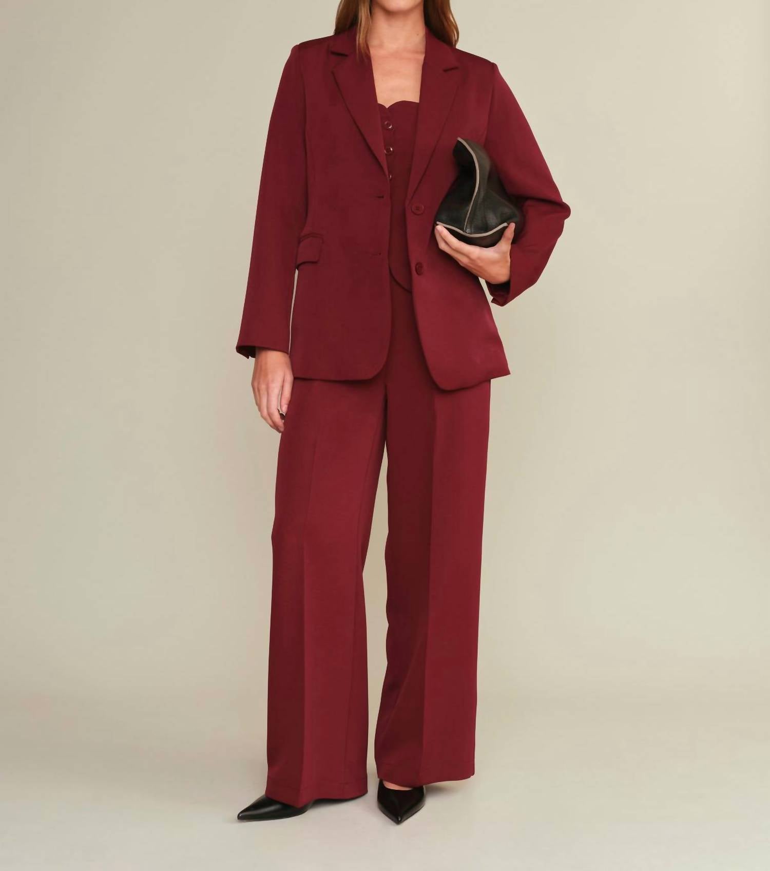 A straightleg pant that workes season after season. Dress these up with your favorite blouse or keep it casual with your go-to tee. Introducing the Deluc Alex Dress Pants in a striking burgundy that elevates your wardrobe with sophistication and style. Crafted from high-quality polyester, these women's straight-leg pants feature a mid-rise waist and a zip closure for a comfortable and secure fit. Designed with a regular fit and equipped with pockets, they offer practical elegance perfect for Valentine's Day dinners or any Spring occasion.