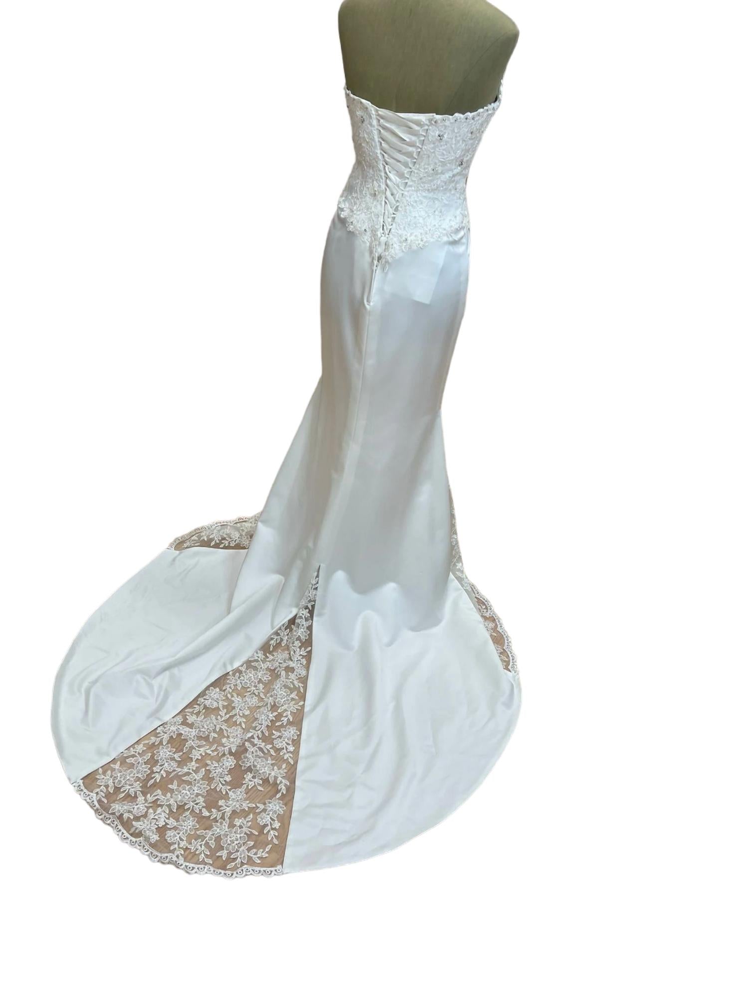 Experience the epitome of elegance and sophistication with the Women's Strapless Mermaid Wedding Gown by Mary's Bridal. Dressed in a dreamy ivory hue, this figure-flattering masterpiece clings to your curves, accentuating your natural beauty as you walk down the aisle. The mermaid silhouette gracefully transitions from a fitted bodice to a voluminous flared skirt, offering a breathtaking blend of modern chic and timeless romance. Crafted with meticulous attention to detail, this gown promises an unforgettable entrance, making your special day nothing short of magical. Bust - 35", Waist - 27", Hips - 39".