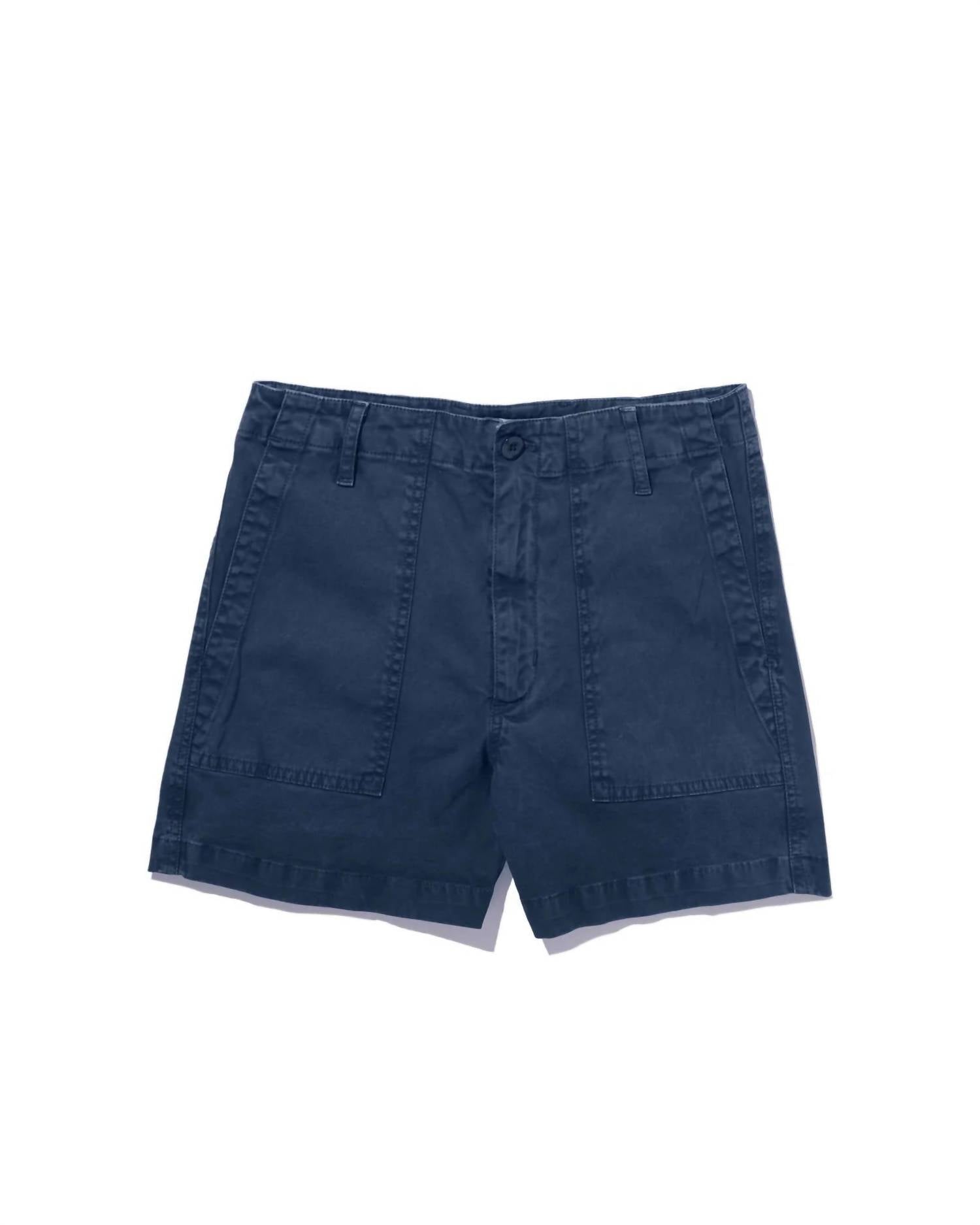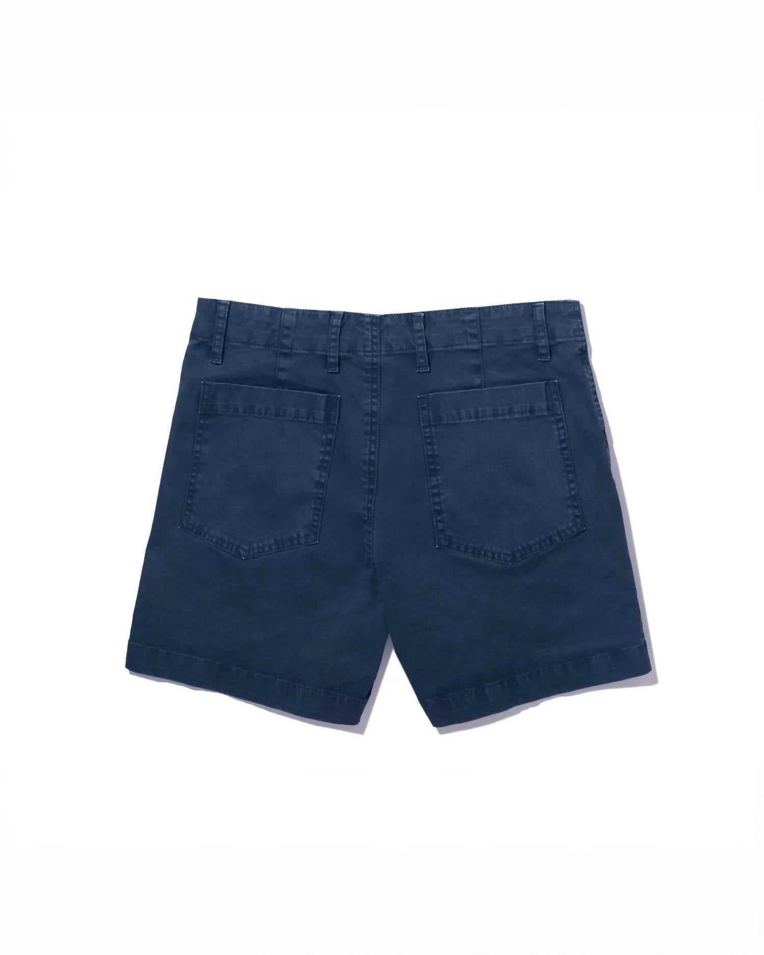 Jean shorts so versatile, you can literally wear them with anything. Introducing the City Short by KULE, perfect for summer travels with its stylish and minimalist design. Made in Portugal, this navy short features a comfortable 97% cotton and 3% elastane blend, ensuring a hint of stretch for ease of movement. It boasts a straight leg, mid-rise fit with a 4-inch inseam, and practical front and back pockets. Closure: Button closure. Care: Machine washable, making it a versatile addition to your warm-weather wardrobe.