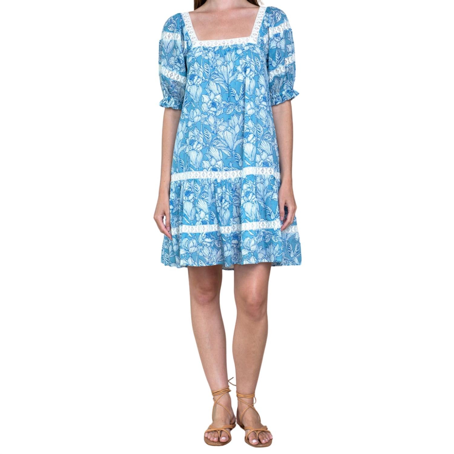 100% cotton poplin. Ruffle detailed sleeve, square neck, and mini length. Machine wash cold on a gentle cycle.
