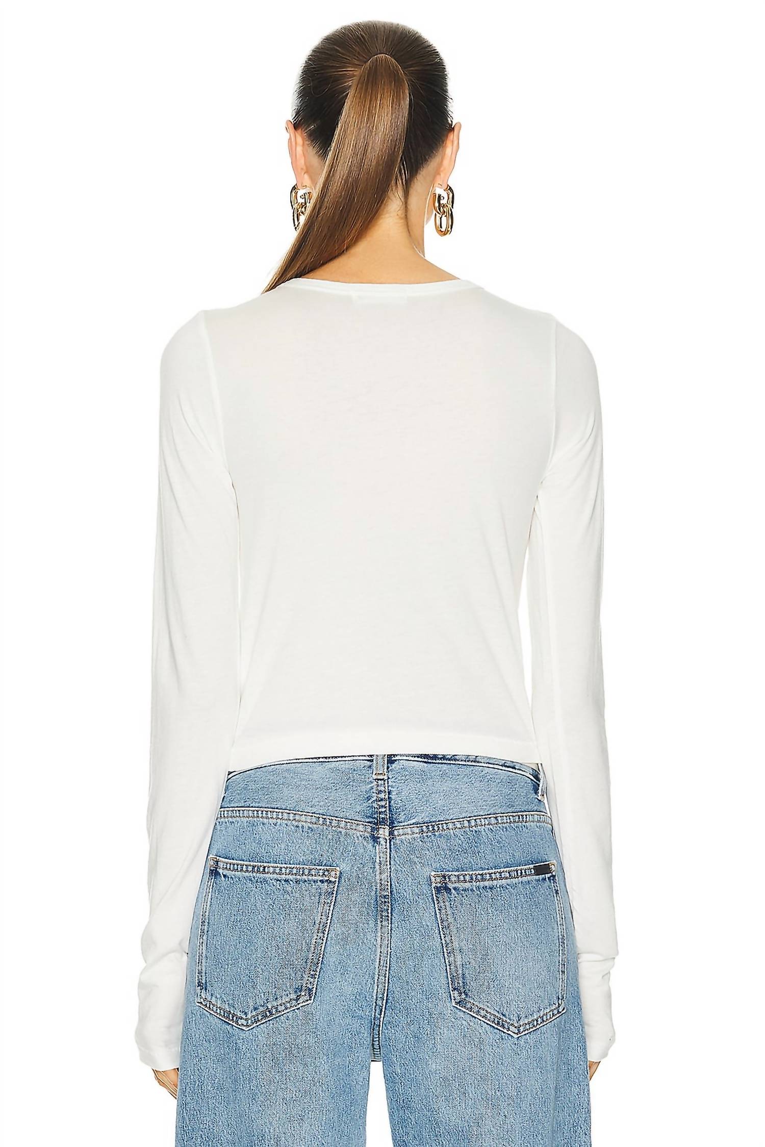 Great fit, cute design, soft fabric. You'll love everything about this long sleeve tee. Presenting the Long Sleeve Baby Tee by Eterne, a timeless addition to any wardrobe in elegant ivory. This women's solid tee is crafted from a comfortable cotton blend, comprising 50% cotton and 50% modal, ensuring softness and durability. Made right here in the USA, it boasts a convenient pull-on closure. Care for this essential piece is simple with machine wash instructions.