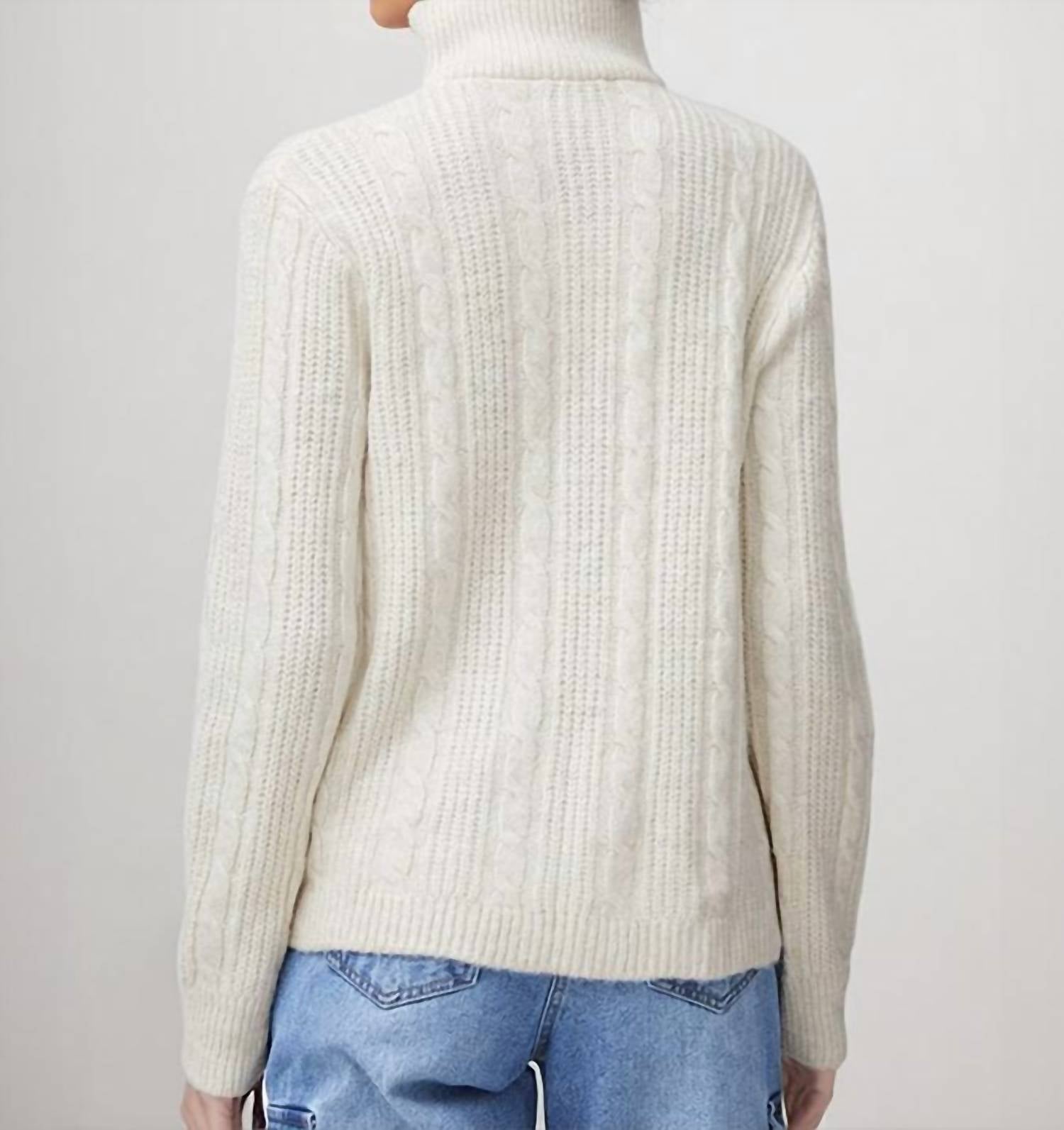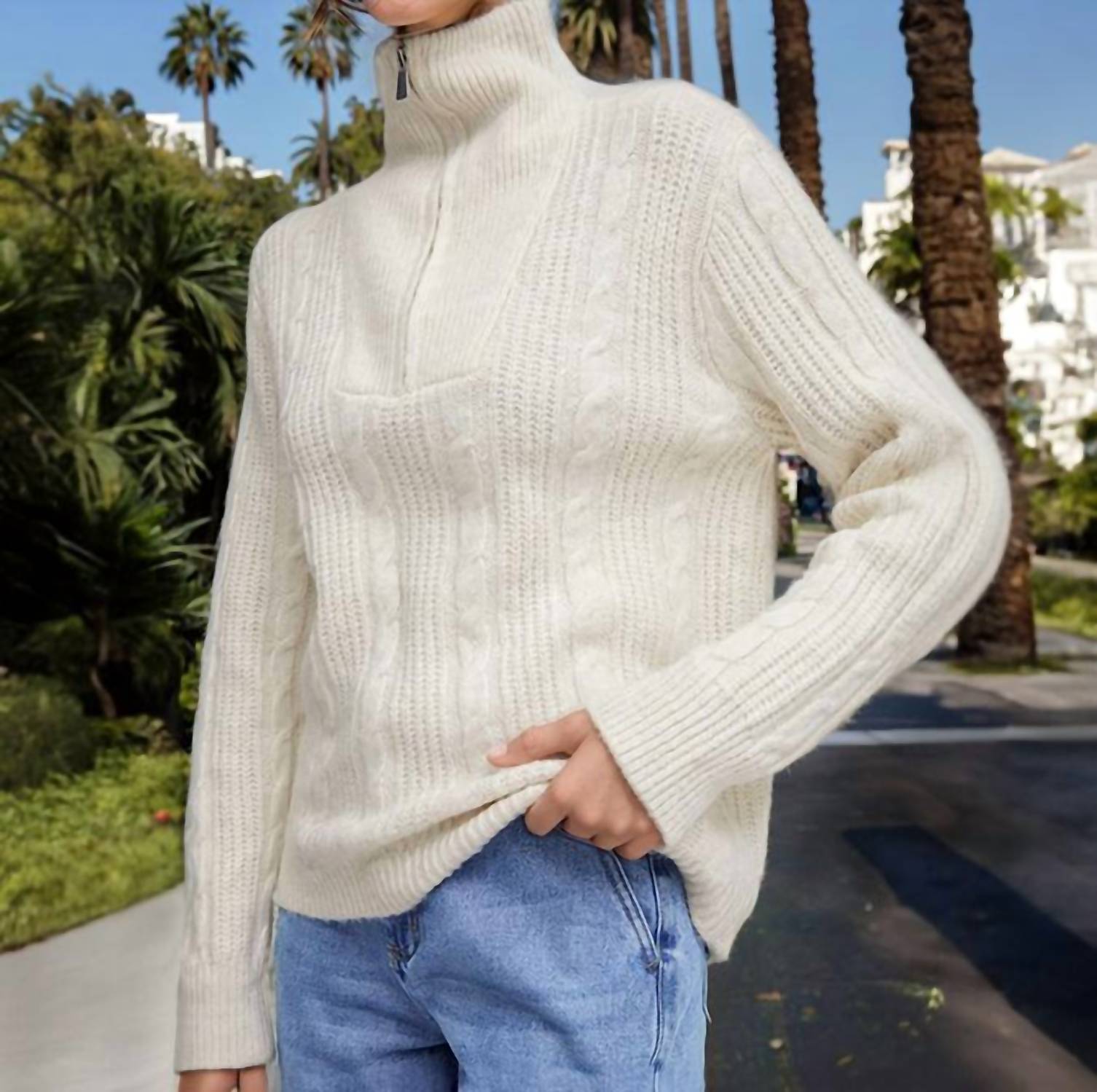 The NOPA pullover chunky cableknit sweater is a cozy style with a 1/2 zip at the neckline. The super soft acrylic blend that is easy to polish up with a sharp skirt and some jewelry. It's a classic you need to have, we promise! 79% acrylic 21%poly Flat measurements size M unstretched: CHEST: 20" LENGTH: 27 "