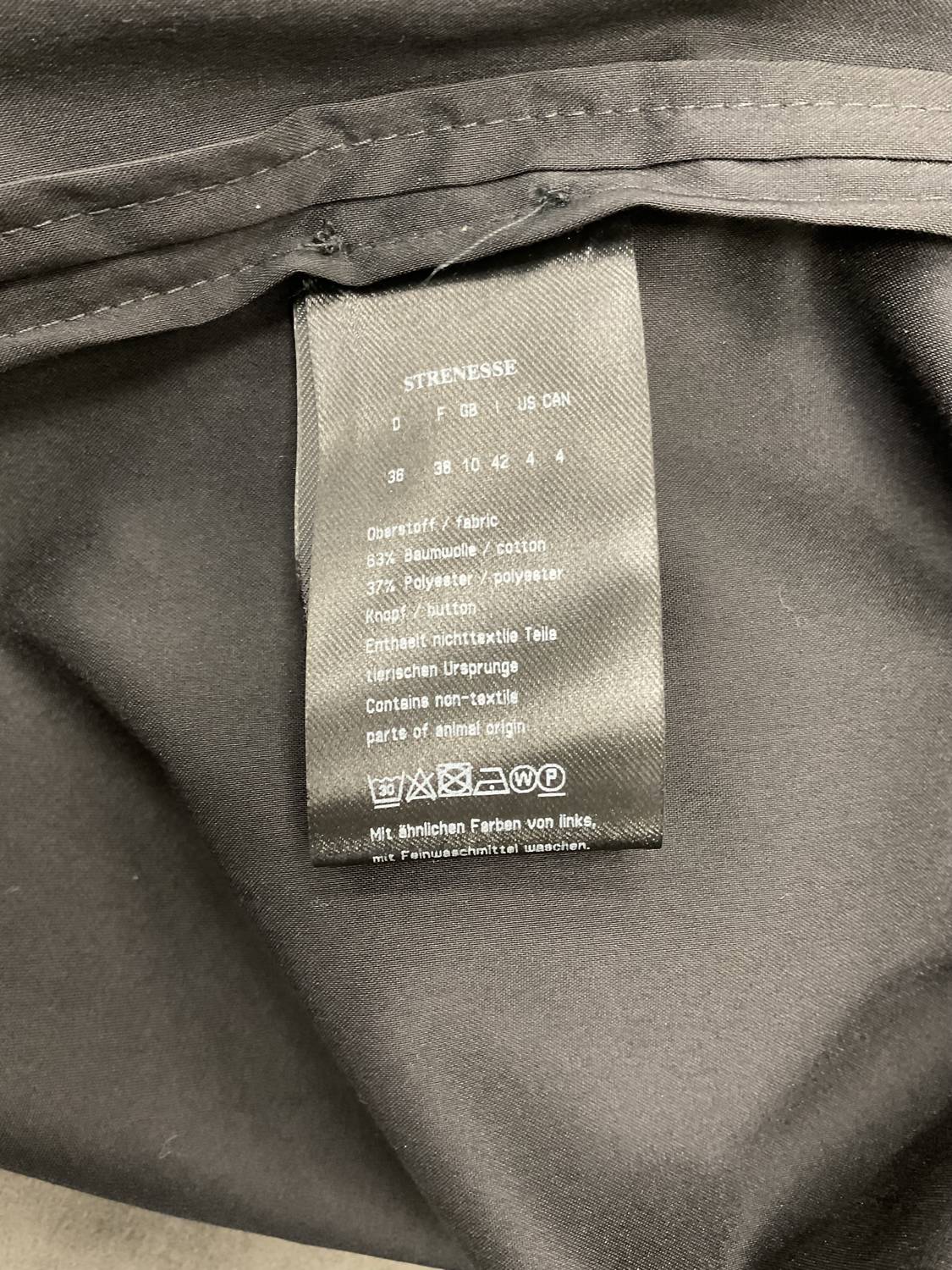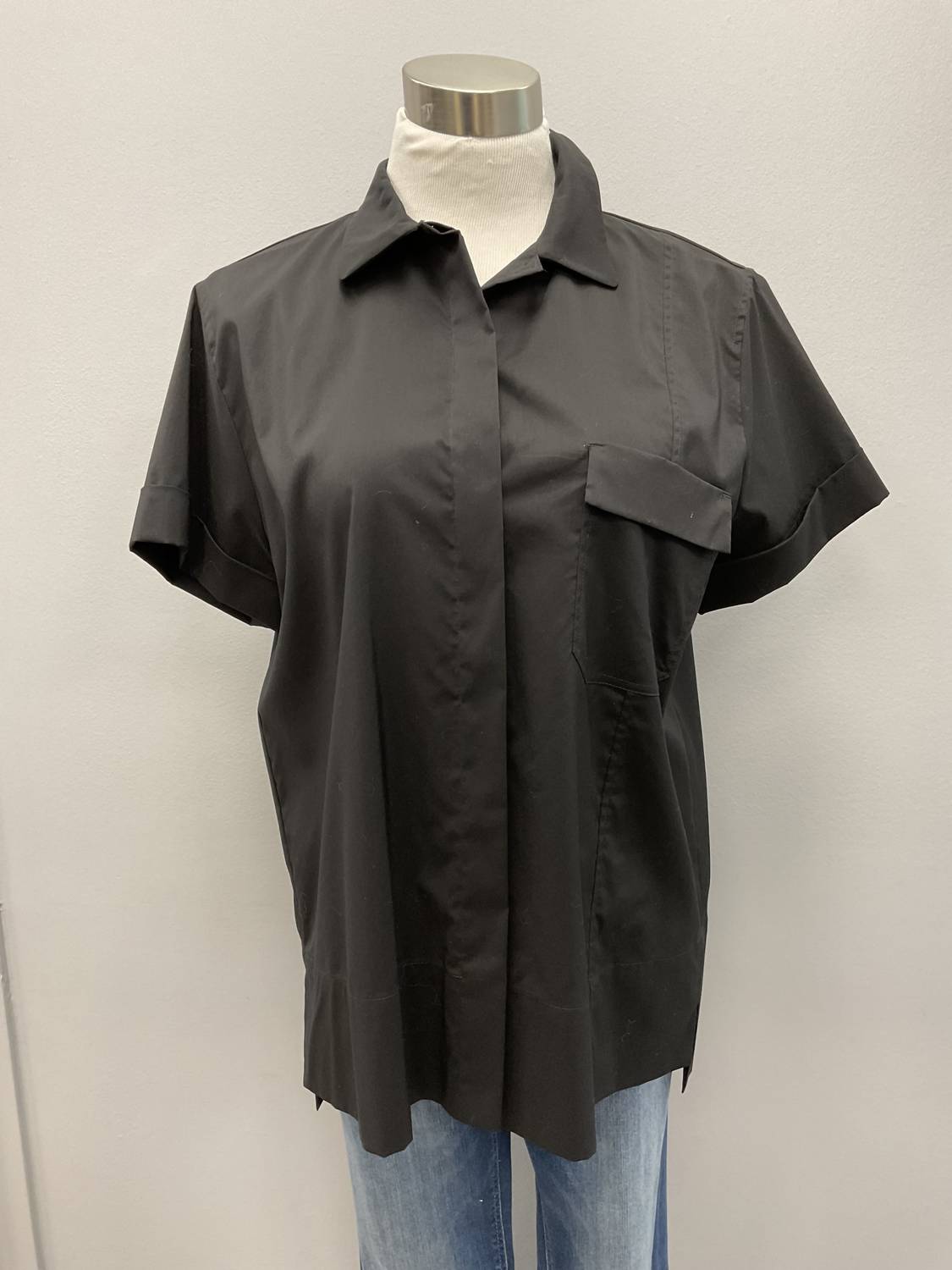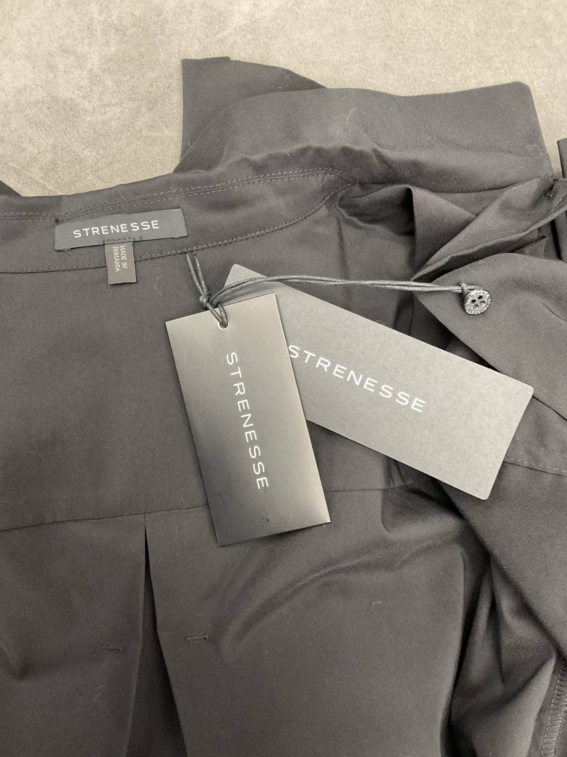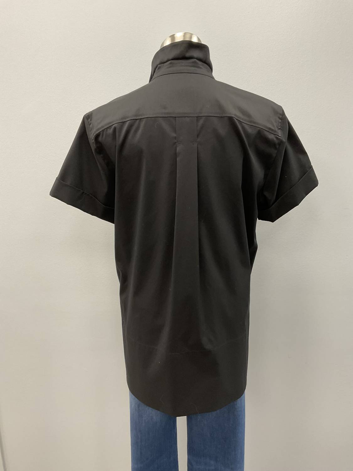 Black STRENESSE fitted short sleeve shirt. 63% cotton, 37% polyester