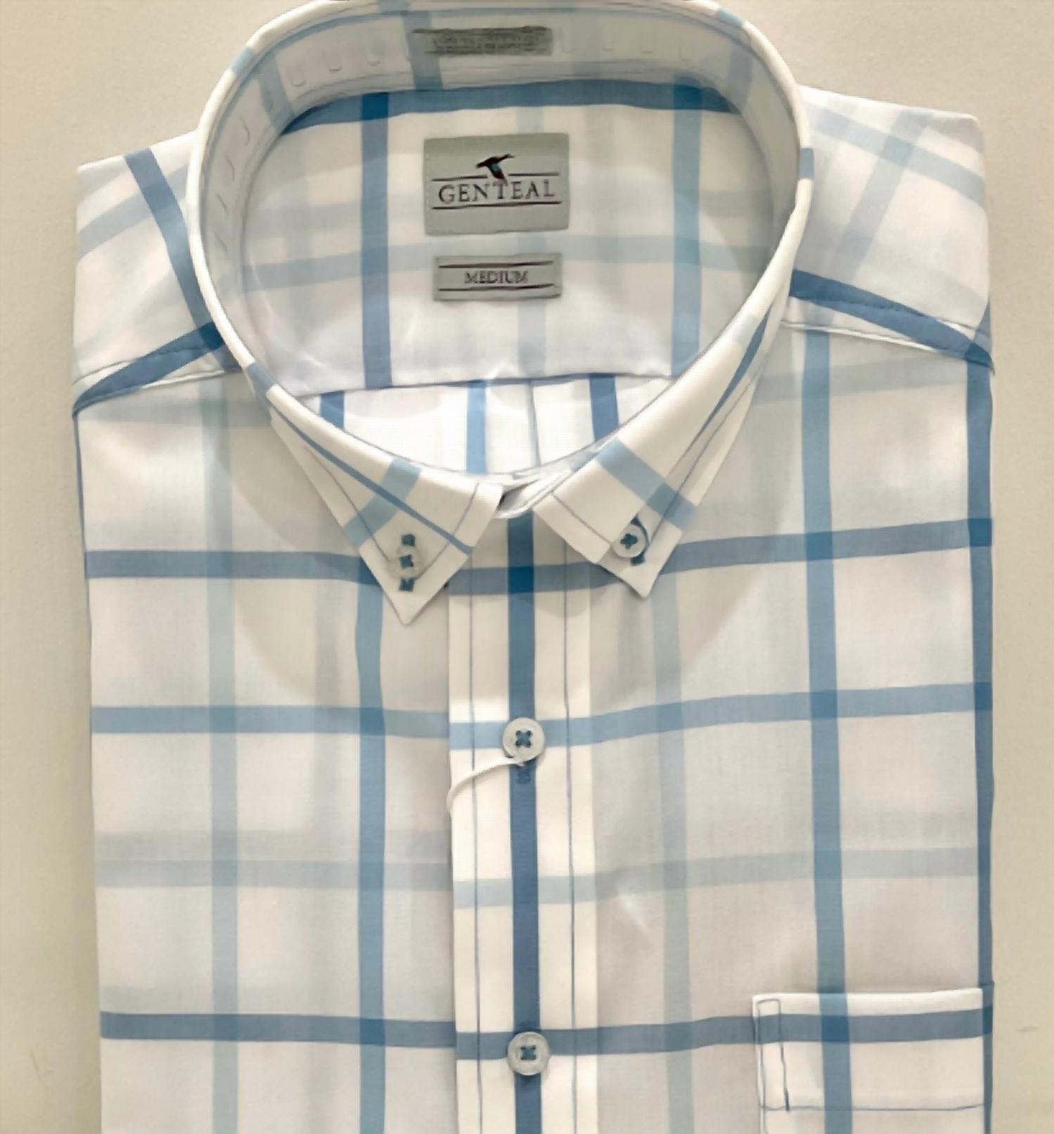 The GenTeal Windowpane Sport Shirt in Sky Blue is an excellent choice for men seeking a blend of style and comfort, perfect for summer occasions like church. Designed with short sleeves and crafted from 100% cotton, this shirt combines breathability with a classic plaid & check pattern. It features a practical button closure and includes pockets for added convenience. Ideal for casual settings, this shirt effortlessly balances fashion and function.