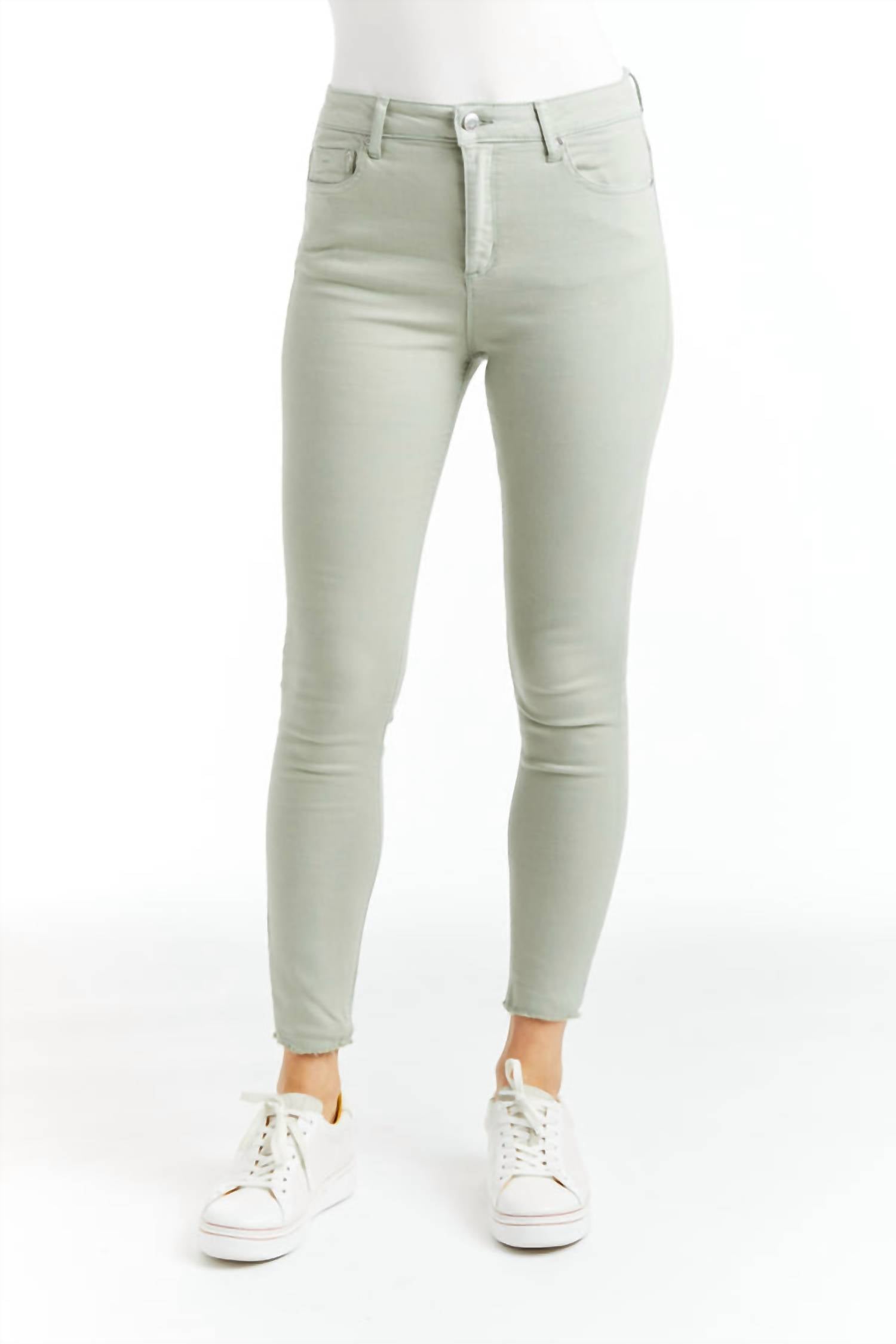 57% Cotton, 32% Rayon, 8.5% Spandex, 2.5% Lycra. This Mona Crop Skinny is made of stretch fabric for comfortable fit with exceptional recovery. Outrageously fun and colorful, these classic high waisted cropped skinnies were always made to stand out. Measurements [Front Rise: 10", Inseam: 27", Leg Opening: 9"]