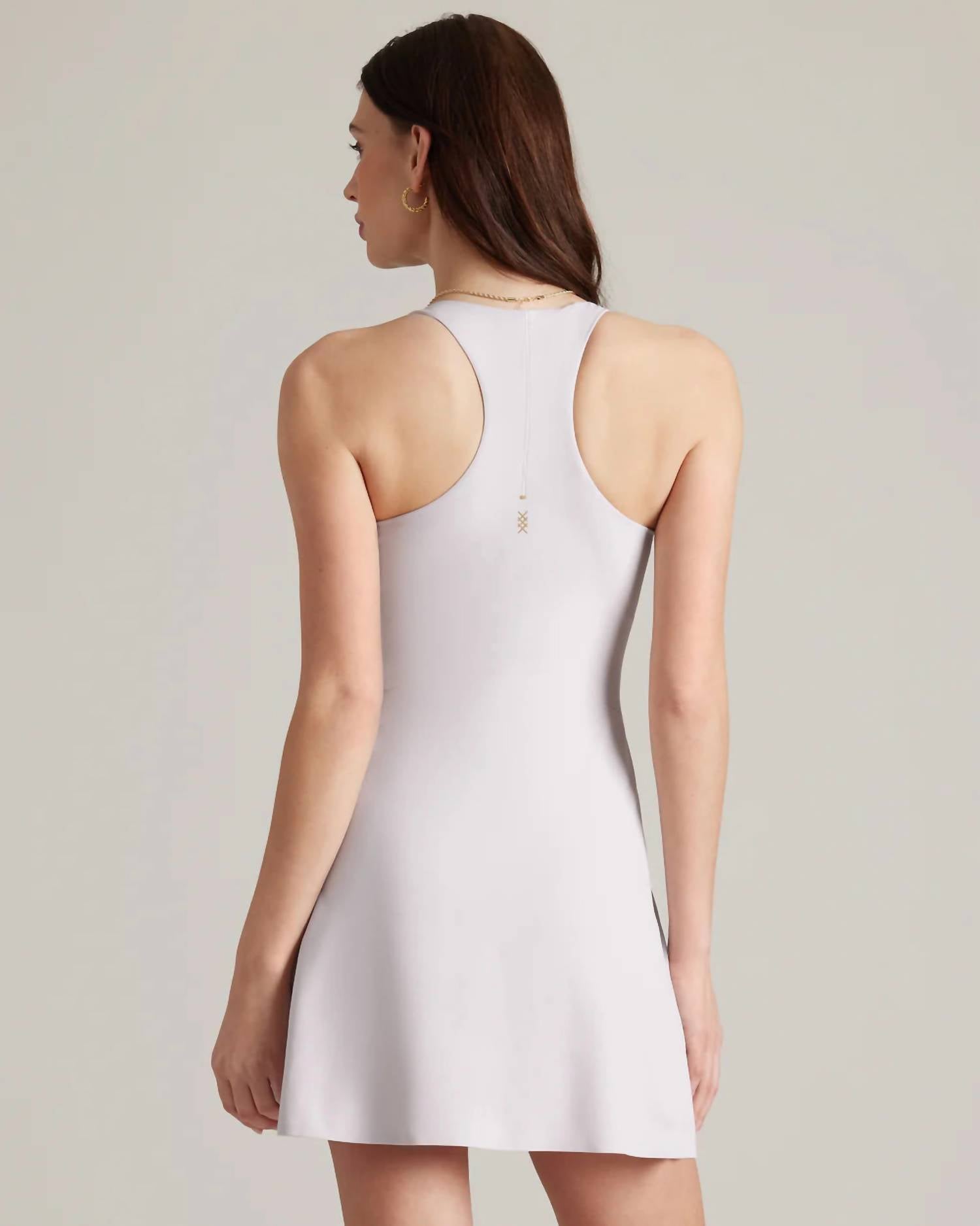 The perfect mini dress for those warmer months. Introducing the Course to Court Sport Dress by RHONE, a sleeveless A-line silhouette designed for the active and style-conscious woman. Crafted from 4-way stretch Revive fabric with GOLDFUSION® Anti-Odor Technology, this solid Grey Lavendsasa dress offers UPF 50+ sun protection and a super soft hand feel. It features a slim fit with a 15” skirt length and 4” short inseam, complemented by a built-in short liner with two hidden drop-in pockets. Closure: Pull-on style. Care: Machine wash and tumble dry for convenience.