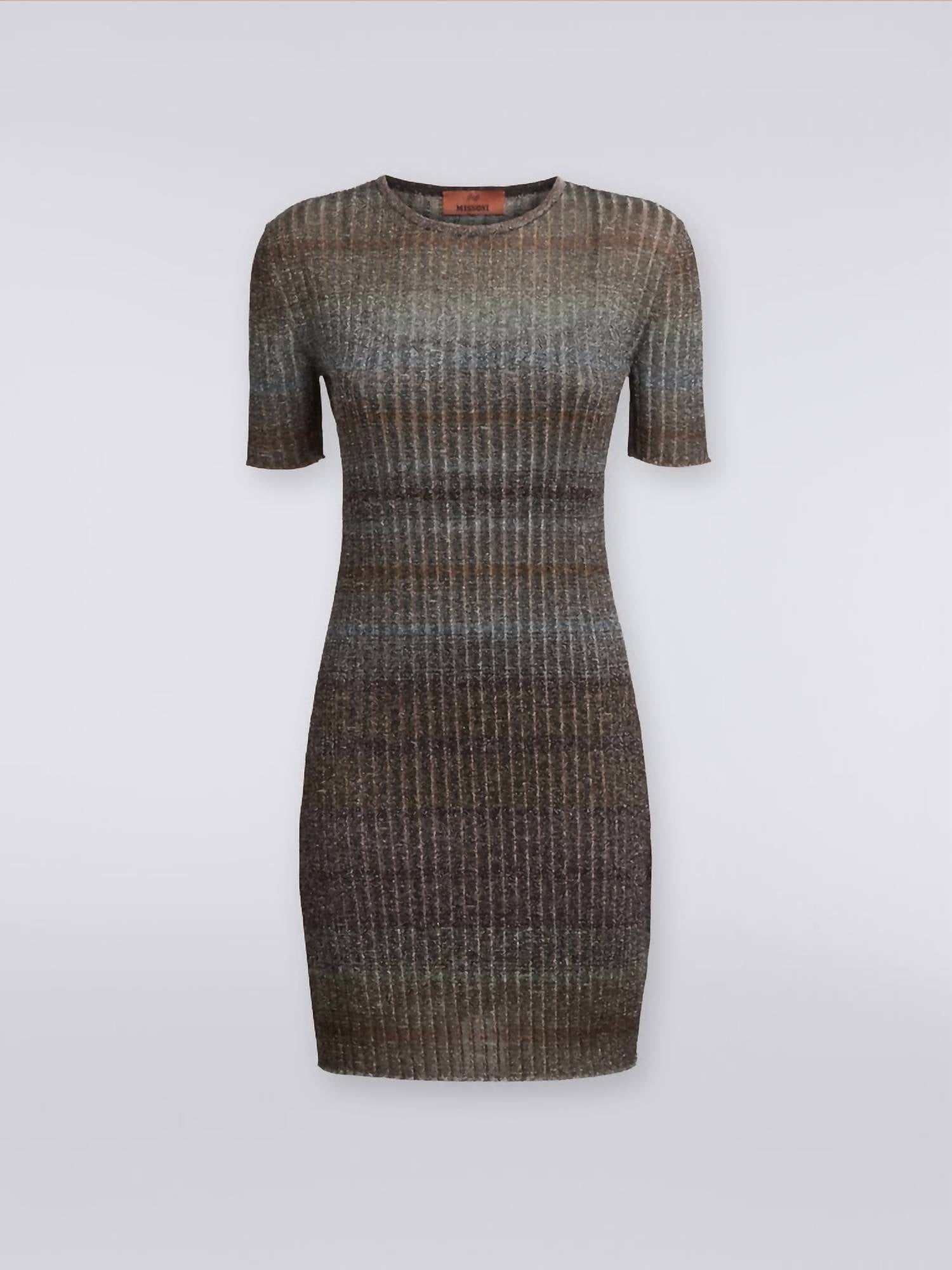 The kind of easy and flattering dress you'll be reaching for all season long. Elevate your wardrobe with the Missoni Crew Neck Dress, a stylish mini that exudes bold multicolor stripes for a captivating look. This short sleeve, bodycon silhouette is made from a luxurious viscose blend with lurex, comprising 75% Rayon, 15% Metal Fiber, and 10% Polyamide, complete with a soft lining of 82% Polyester and 18% Elastane. With Italian sizing and a convenient pull-on closure, it offers a sleek, fitted design perfect for any occasion. Care: Hand wash and line dry to maintain its vibrant charm.