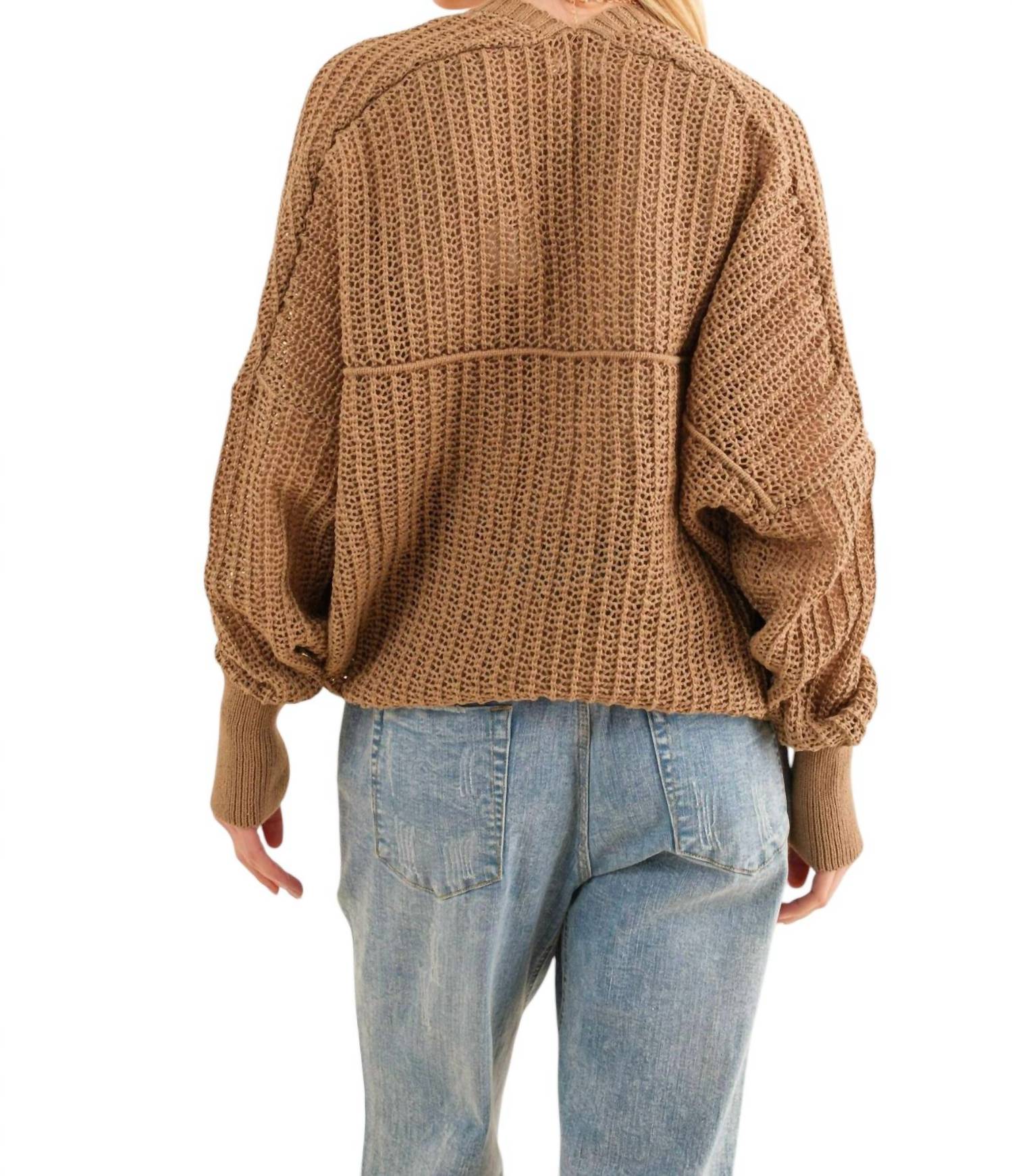 This medium-weight bolero cardigan features a subtle fishnet knit pattern, long sleeves, an open front, and a cropped length. Made from 100% polyester.