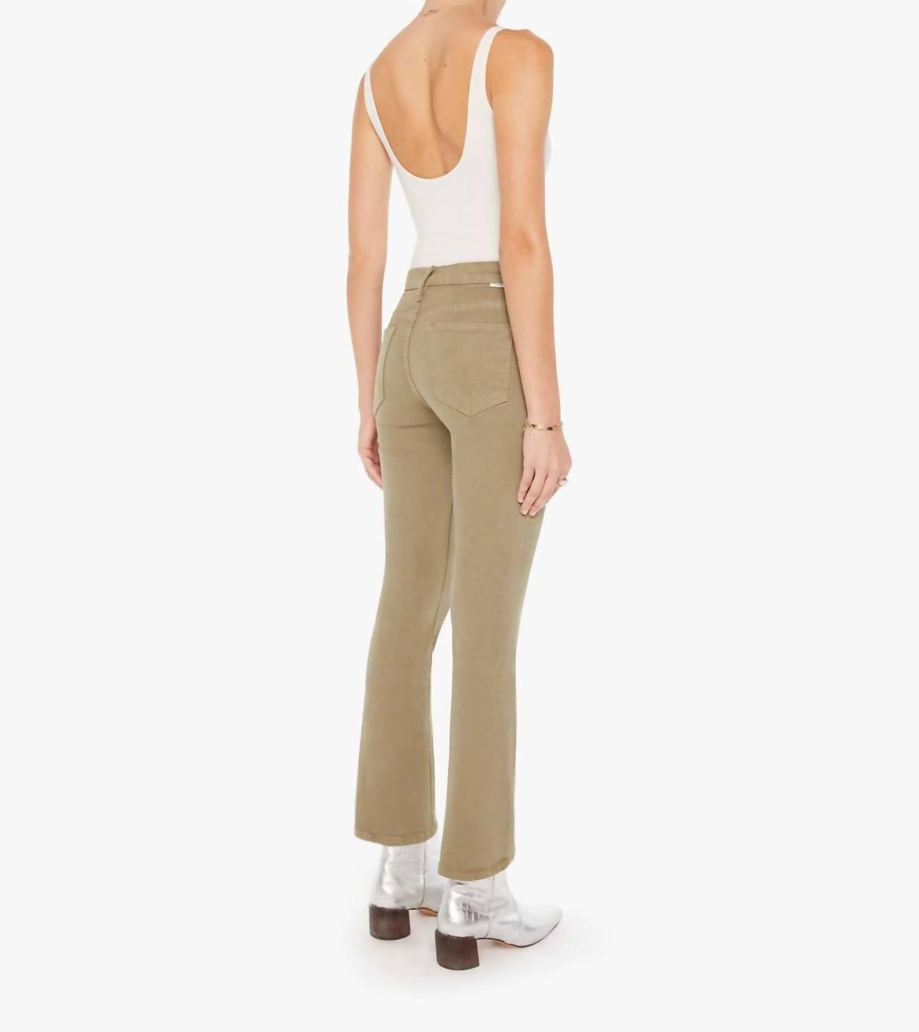 High-waist is here to stay and we especially love this style. Introducing the Insider Hover High-rise Jean by Mother, a chic addition to your travel wardrobe. These jeans in a captivating Mermaid kelp green feature a high-rise waist and a slimming bootcut leg with a 30-inch inseam. Made from a cotton blend composed of 98% Cotton and 2% Elastane, they offer a comfortable stretch. Closure: Button closure. Care: Machine wash and tumble dry.