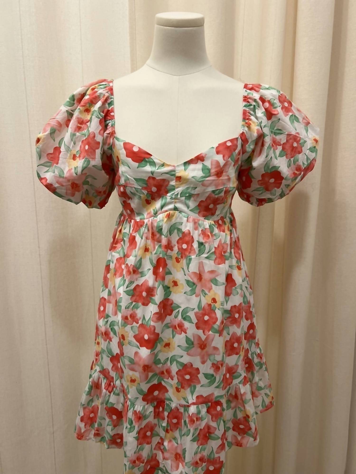 The kind of easy and flattering dress you'll be reaching for all season long. Introduce a touch of boho chic to your summer wardrobe with the &merci Floral Sweetheart Mini Dress in a charming Pink/White floral pattern. This 100% cotton dress features short puff sleeves and an empire waist silhouette, complemented by a romantic sweetheart neckline. Designed for vacation-ready style, it secures with a convenient side zipper closure. Care instructions: Hand wash and line dry for lasting quality.