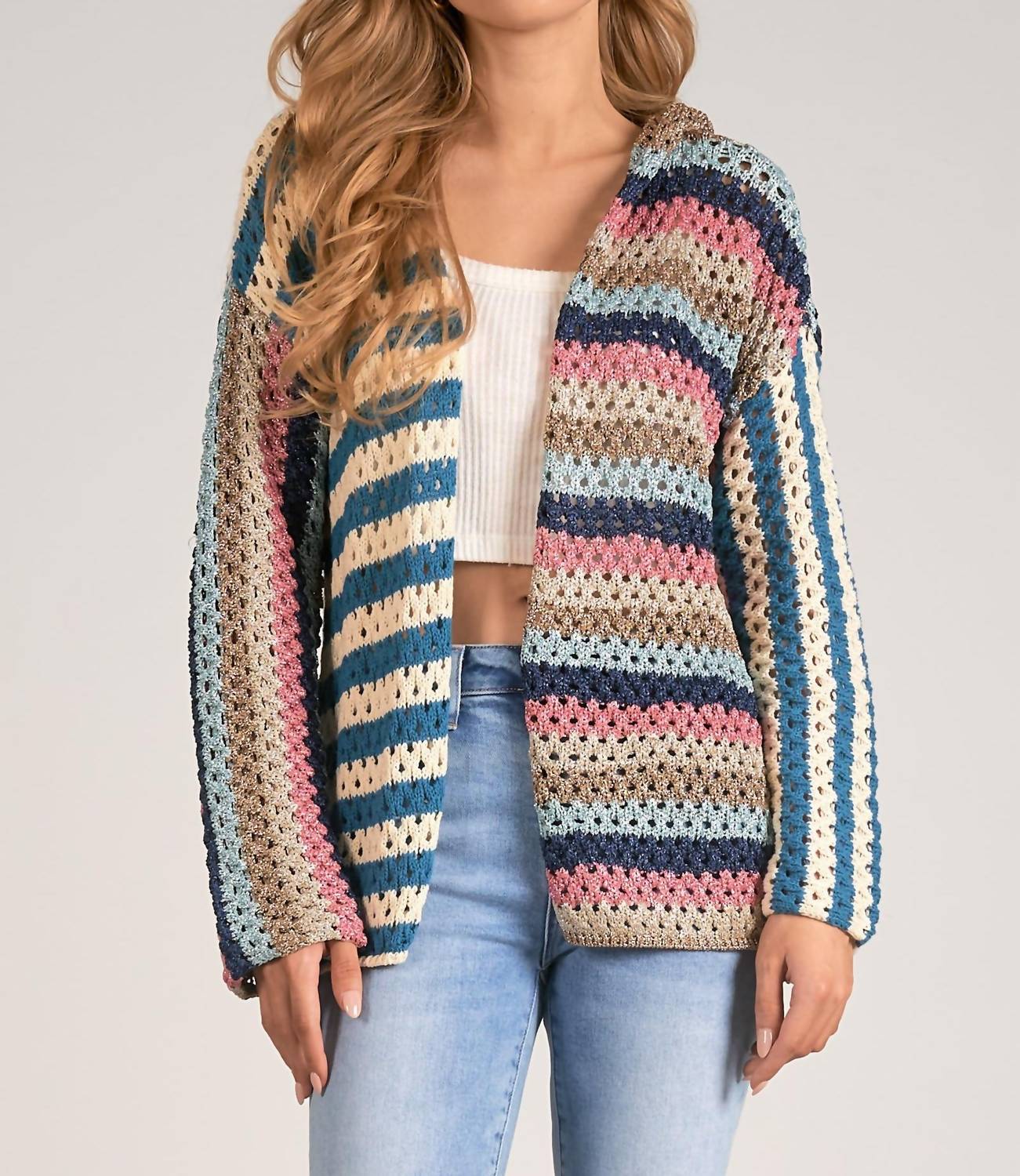 This sweater cardigan hoodie with a knit, multi-colored design that's cool and fun. Stand out and add something unqiue to your wardrobe. 60% Polyester 40% Acrylic