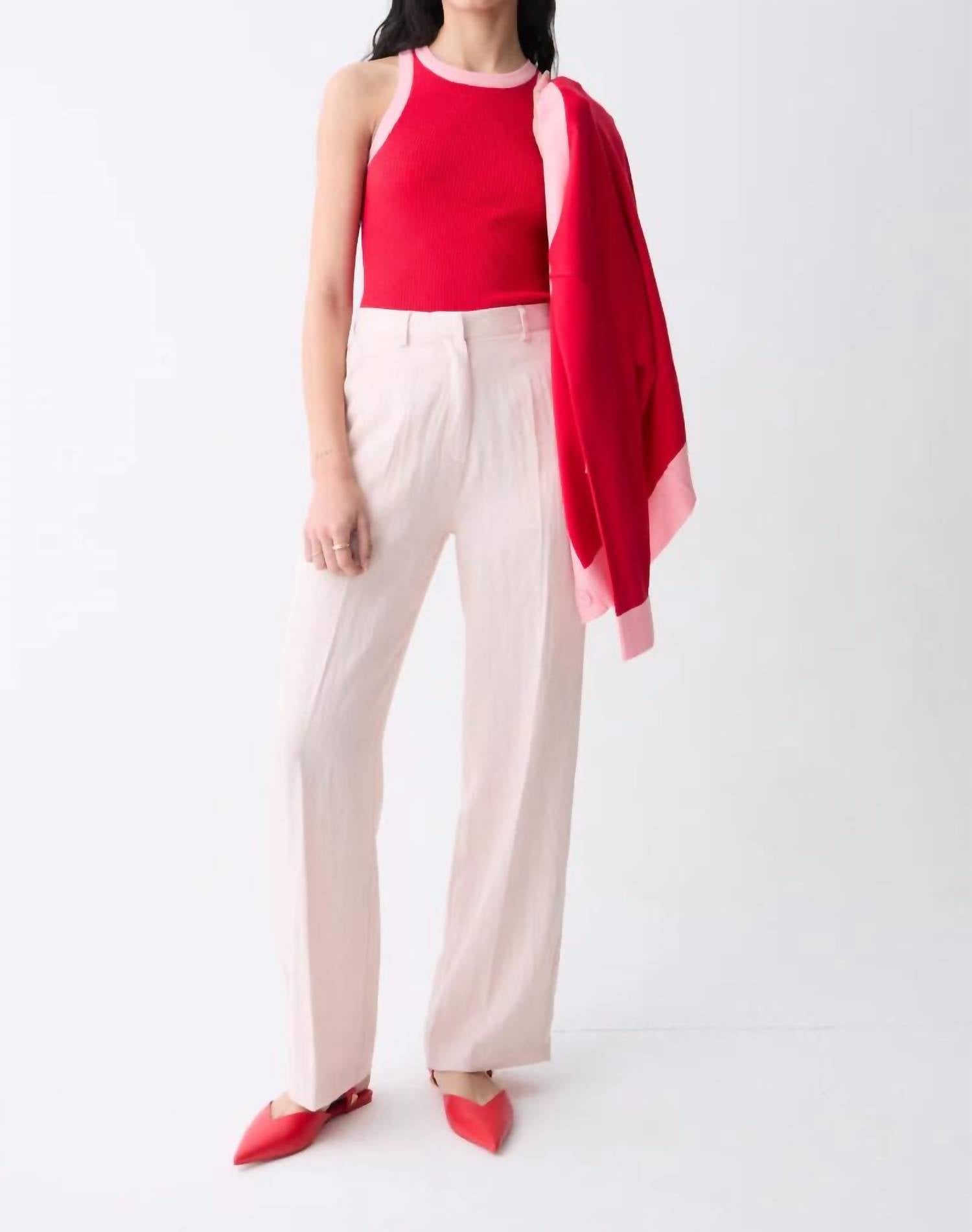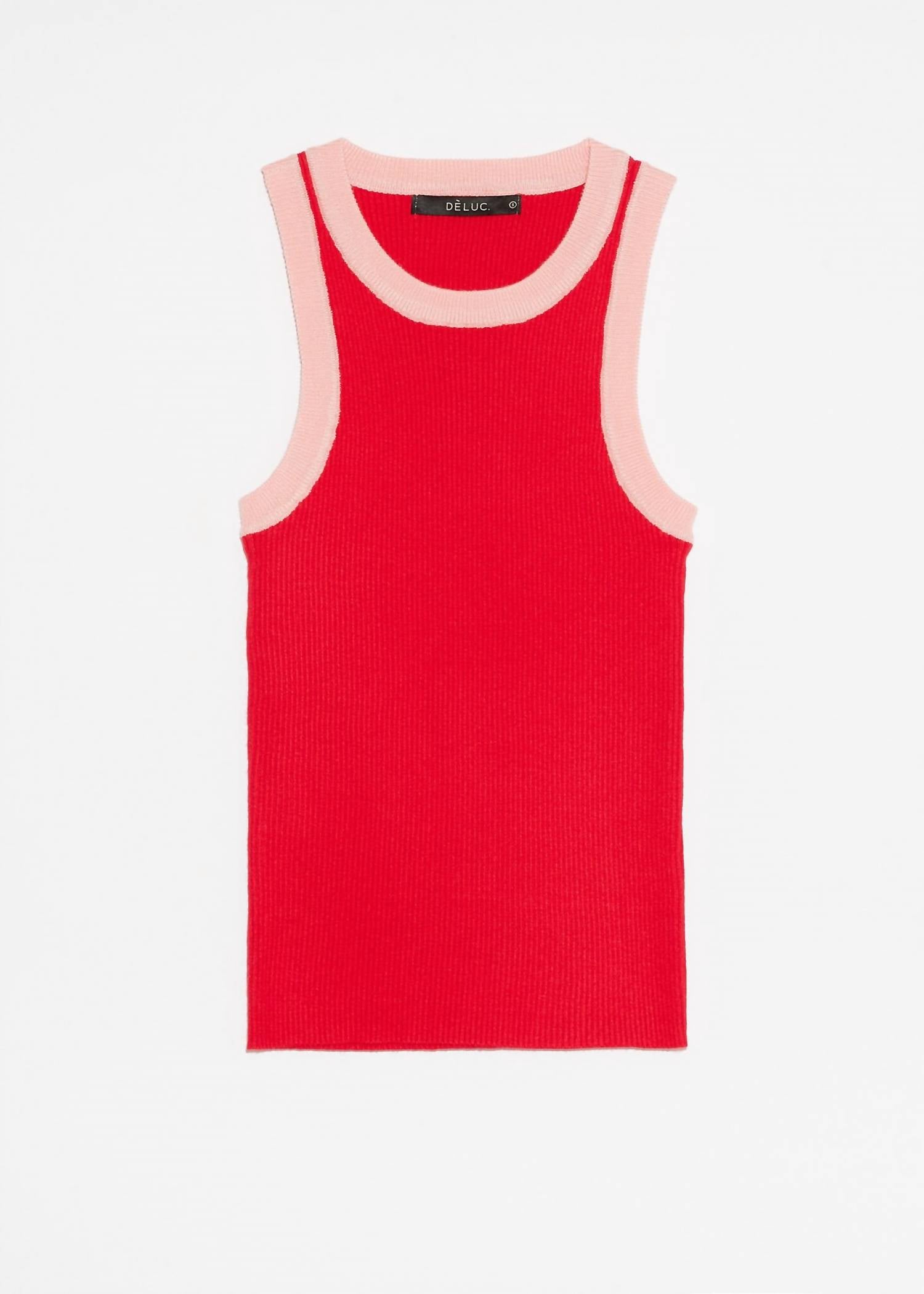 The perfect tank top for those warmer weather seasons. Enhance your wardrobe with the Lisboa Knit Top by DELUC, a stunning sleeveless piece in vibrant red. This knitted top is crafted from a viscose blend featuring a comfortable crewneck design and contrast cuffs. Closure: Pull-on style for easy wear. Care: Hand wash and line dry. The model is 175 cm/5'9" and is wearing size S.