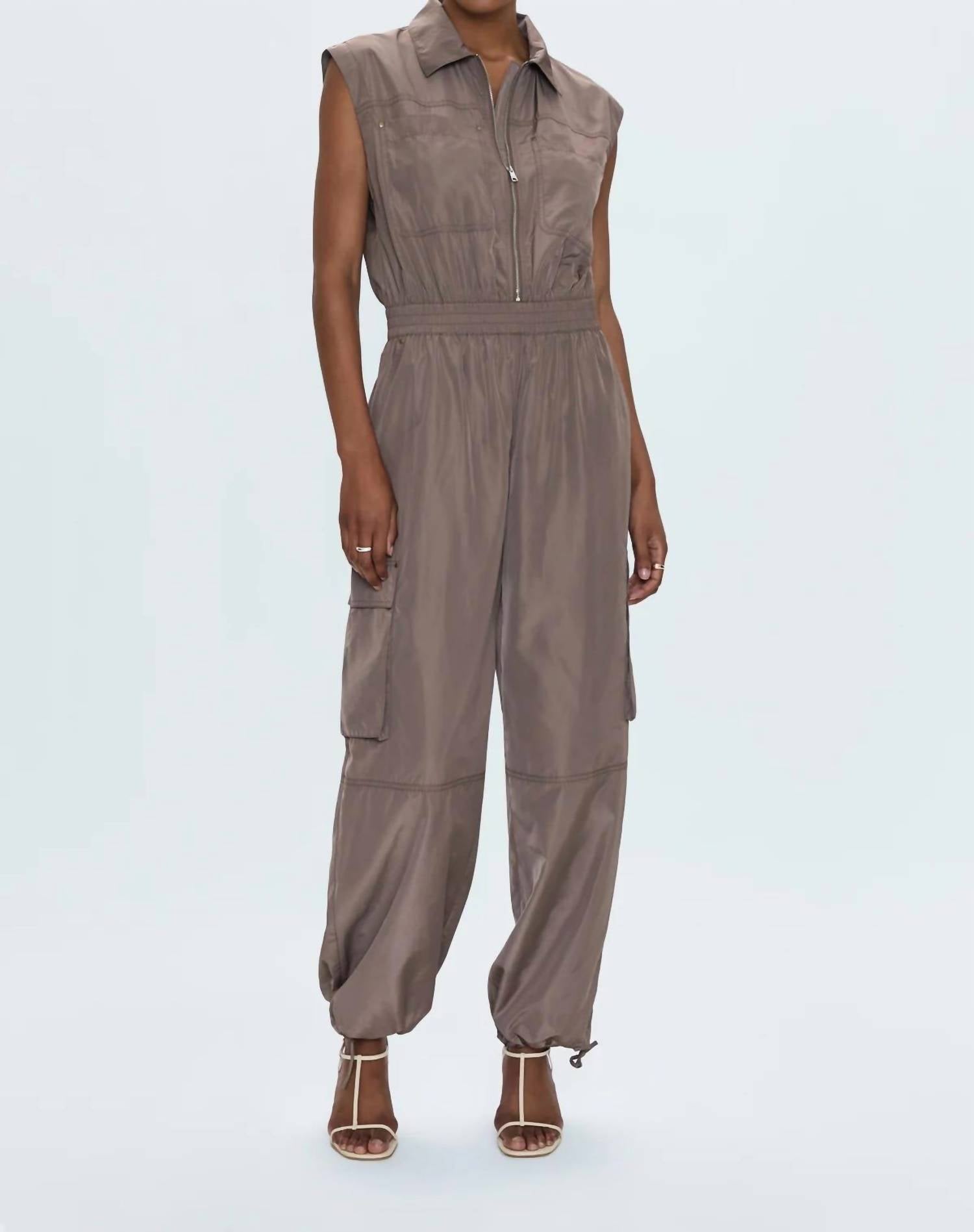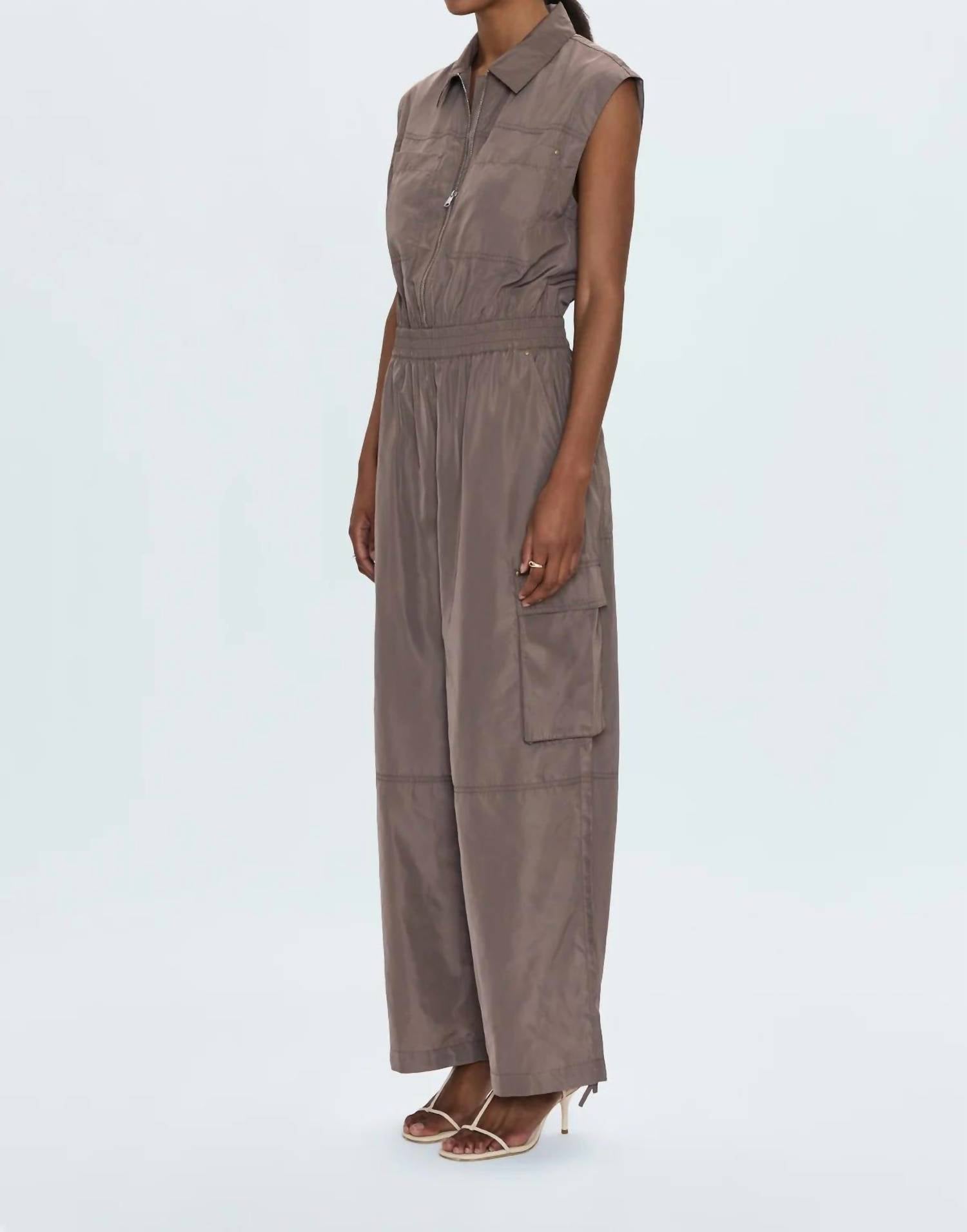 It doesn't take much for this one piece to look effortlessly cool. Add some statement jewelry to dress it up, or throw on some sneakers for a more casual vibe. Elevate your wardrobe with the Becca Wide Leg Jumpsuit by PISTOLA, rendered in a sophisticated Cedar shade. This sleeveless jumpsuit is crafted from 100% polyester and features a half-zip closure for effortless wear. Enhanced by various functional pockets — including chest patch, cargo flap-patch, front slant, and back patch pockets — it offers ample storage options. With an elastic waist and drawcord-toggle hems, it ensures a comfortable fit, perfect for a monochrome autumn look. Care: Machine wash, line dry.