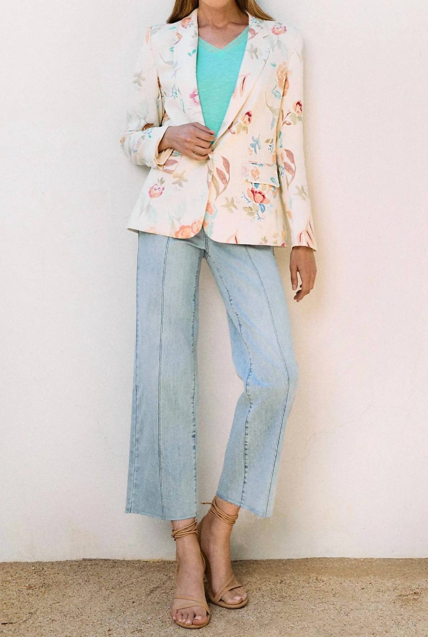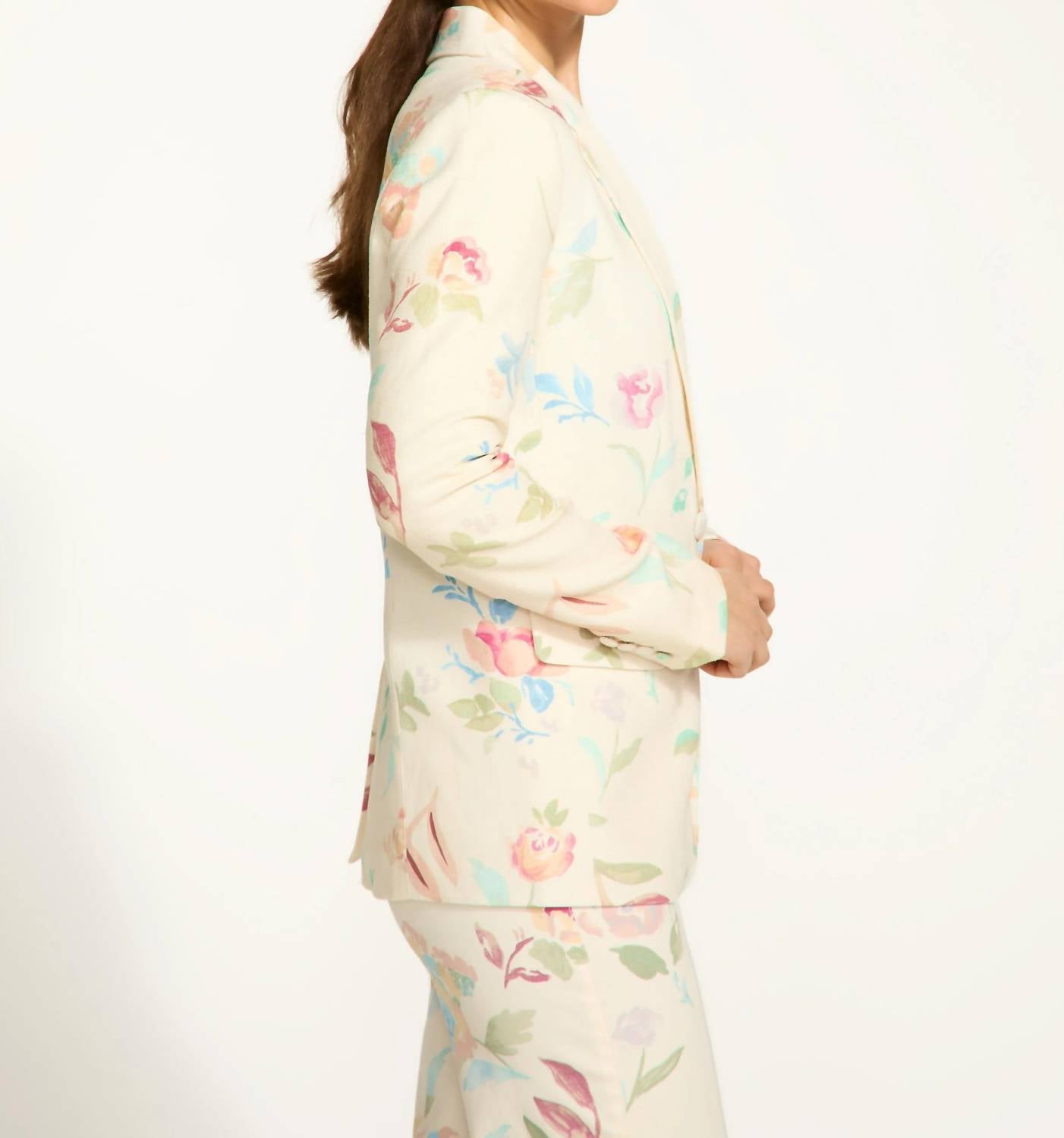 An elevated version of your favorite classic blazer. Introducing the FDJ Duchess Libby Long Sleeve Blazer in a versatile ivory floral print that suits any occasion. Crafted from 80% Viscose and 20% Linen, this blazer showcases a vintage-inspired pattern and a notch collar with self-covered button closure. Its 27-inch length is complemented by practical flap pockets, offering both style and utility. Easy to maintain, simply machine wash as needed for continued elegance.
