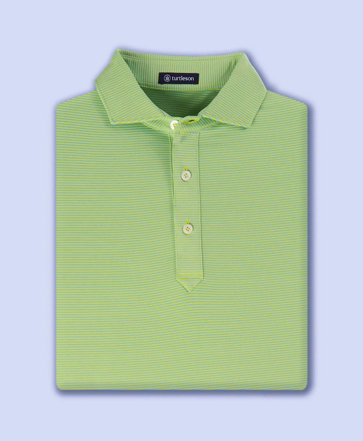 Elevate your wardrobe with the Turtleson Kershaw Polo Shirt in striking Limoncello/ciel stripes. This short-sleeve polo is crafted from a breathable blend of 92% polyester and 8% spandex, offering a moisture-wicking, performance-driven fabric that ensures comfort. Designed with a modern collar and button closure, it complements any body type with its classic fit. Perfect for summer or a Thanksgiving getaway, this polo is an easy-to-care-for staple that effortlessly blends style and versatility.