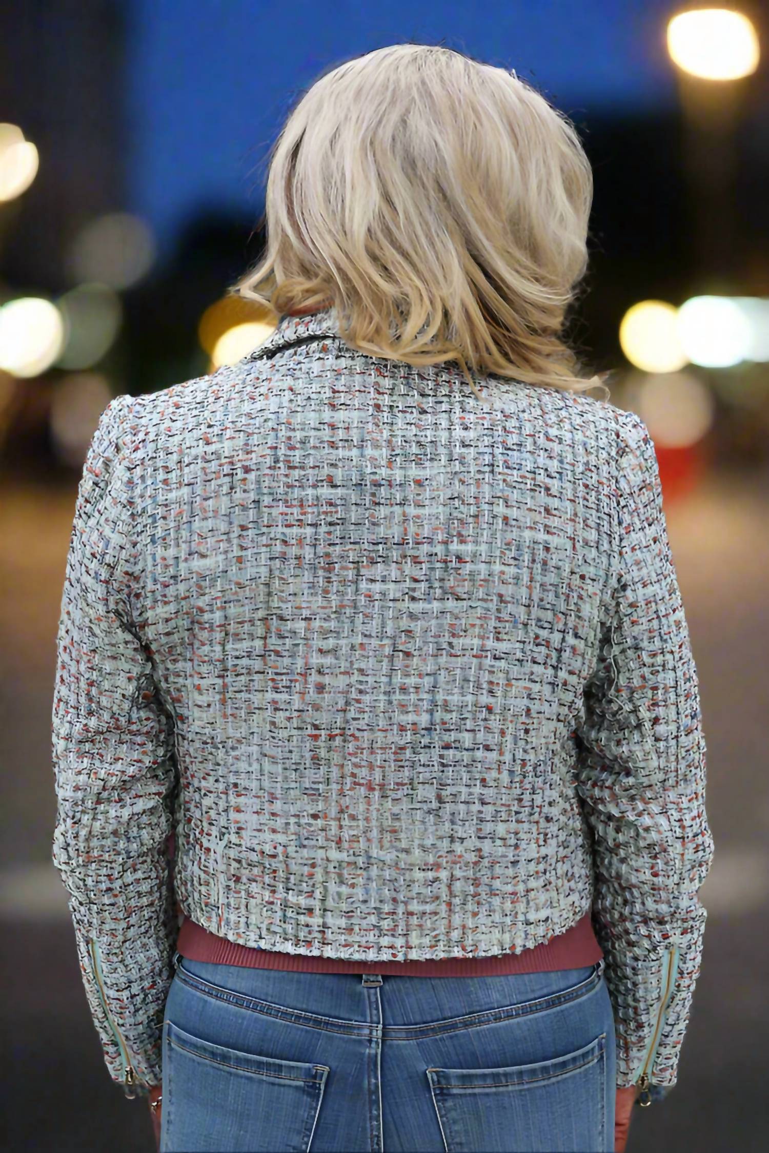 The Bishop and Young Romantic Flair Emile Moto Jacket brings a touch of elegance with its jade hue and tweed fabric. Crafted from 80% polyester and 20% wool, this short motorcycle style jacket features a sleek zip closure and a distinctive snap collar. Its long sleeves and true-to-size fit make it a versatile choice for any fashion-forward wardrobe looking to transition seamlessly. Ideal for pairing with jeans and boots or layered over a contrasting sweater for a bold, chic ensemble.