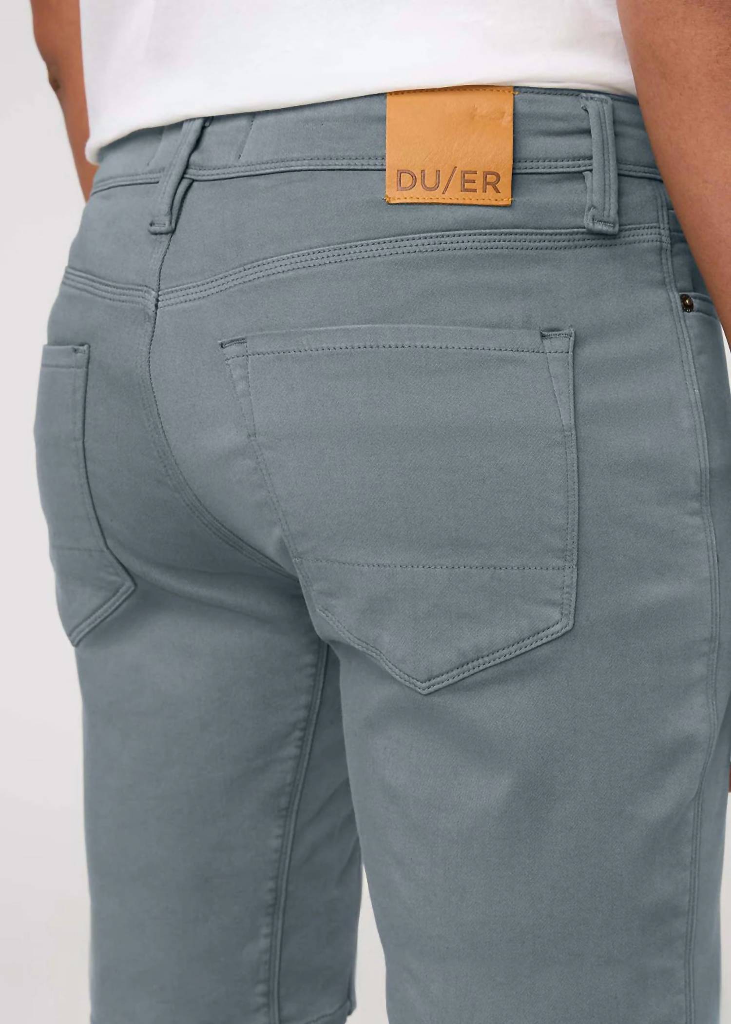 Experience ultimate comfort with the No Sweat Relaxed Short by Duer, expertly crafted for men's streetwear. Made from a cotton blend, these solid River color jean shorts feature a 7" inseam and a versatile 5-pocket style for polished functionality. With moisture-wicking and antibacterial plant-based lyocell fibers, this piece ensures all-day freshness during hot summer days. Featuring a secure zip closure, and signature gusset for ease of movement, these shorts are machine washable and safe to tumble dry.