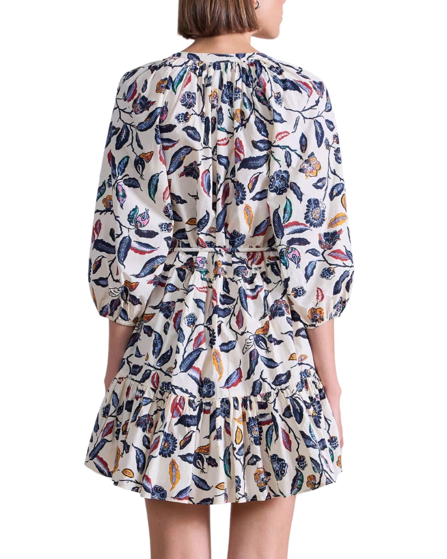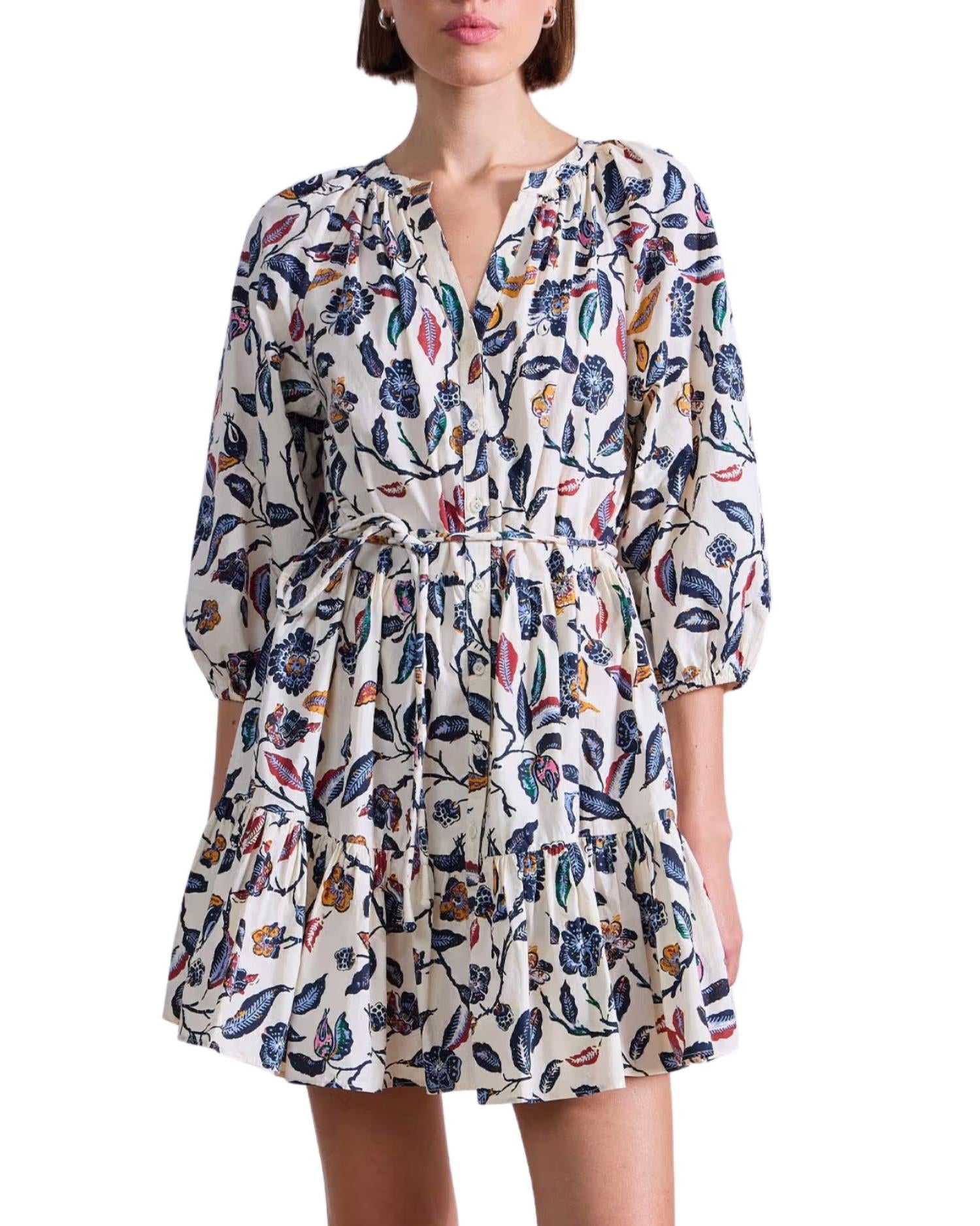 The kind of easy and flattering dress you'll be reaching for all season long. Embrace the summer season with the Mini Mitte Dress by APIECE APART, a stunning choice in a Garden Floral Cream print. Crafted from 100% regenerative cotton, this A-line silhouette features a tiered skirt and three-quarter subtle puff sleeves. The top-to-bottom button closure and removable self-tie belt offer versatile styling options. Made in India, this dress is best maintained with dry clean care.