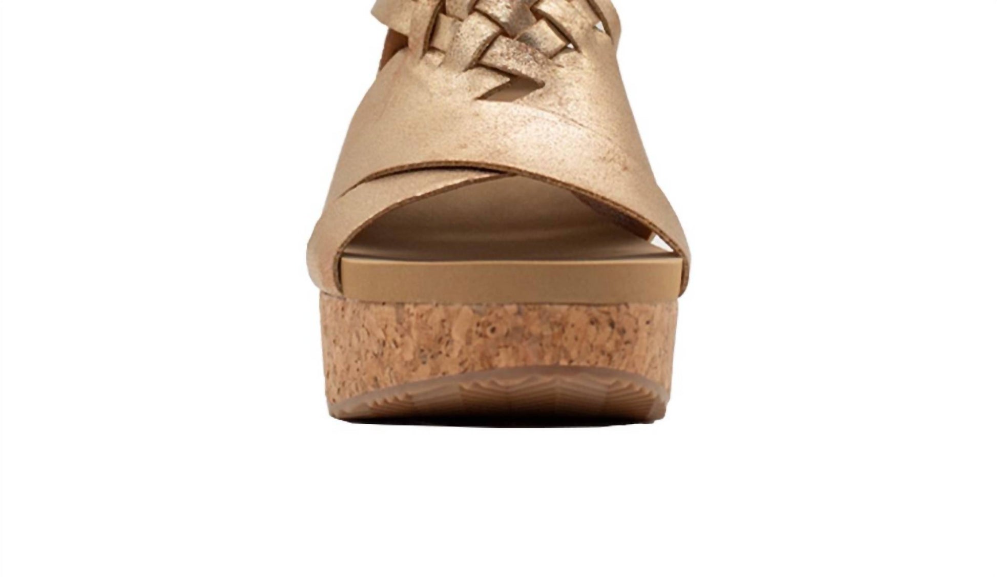 Classicly cute and all-day-wearable. We love this sandal. Elevate your summer style with the Women's Midsummer Sandal by VOLATILE, perfect for a boho chic vibe at any beach day. These sandals feature an open toe design with a gold faux leather or metallic woven upper and a convenient back zipper closure. Enjoy the comfort of the signature ultra comfort EVA insole paired with a 2.75" cork wedge heel and durable rubber traction outsole. Made to complement your favorite jeans or dress, these sandals are the epitome of effortless elegance.