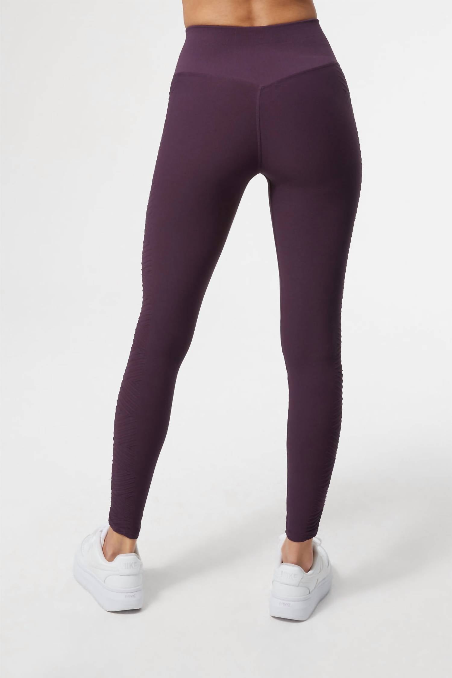 Leggings you can dress up or down for any occasion. The Evie Legging by NUX is a stylish addition to your activewear collection, featuring an eye-catching textured pattern in a vibrant color. Designed with a high-rise skinny leg and a pull-on closure, these leggings are crafted from 93% Sensil® Nylon and 7% Spandex for a silky, second-skin feel. Proudly made without pockets for a streamlined look, they offer moderate compression for a supportive, sculpting fit that's perfect for women. Care is simple with machine wash instructions and the option to tumble dry, ensuring ease with every wear.
