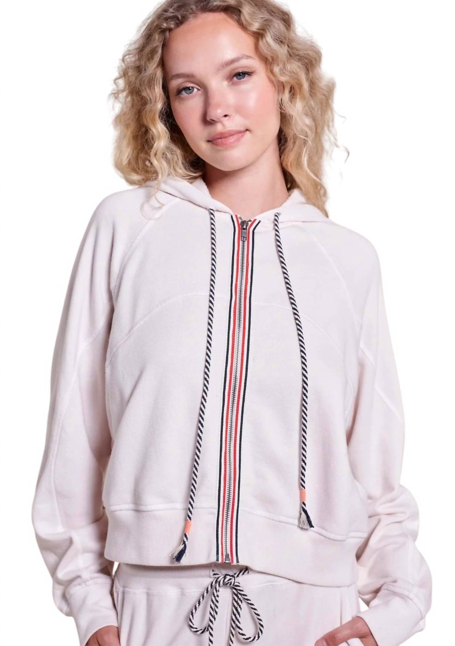 Cooler temps call for layering and we love this adorable sweatshirt for all the obvious reasons. Introducing the Horizon Seamed Hoodie by Sundry, a streetwear-inspired piece that's perfect for your fall wardrobe. This women's long-sleeve hoodie comes in a chic oyster hue and features a zip closure. Crafted from 50% Cotton, 50% Polyester in the US, the solid pattern is highlighted with red and dark blue accents along the zipper, complemented by contrast striped drawstrings. Care for this vacation-ready staple is easy with machine wash and tumble dry instructions.
