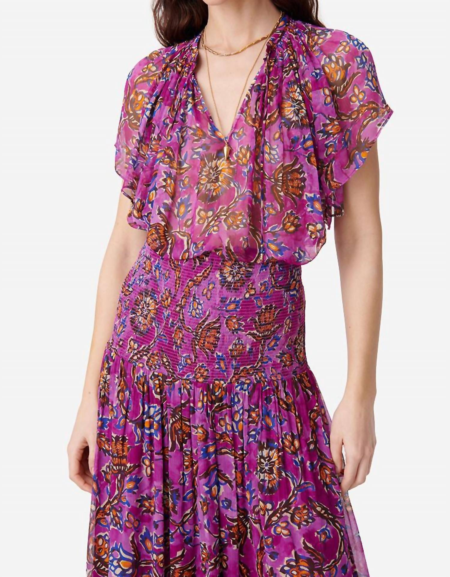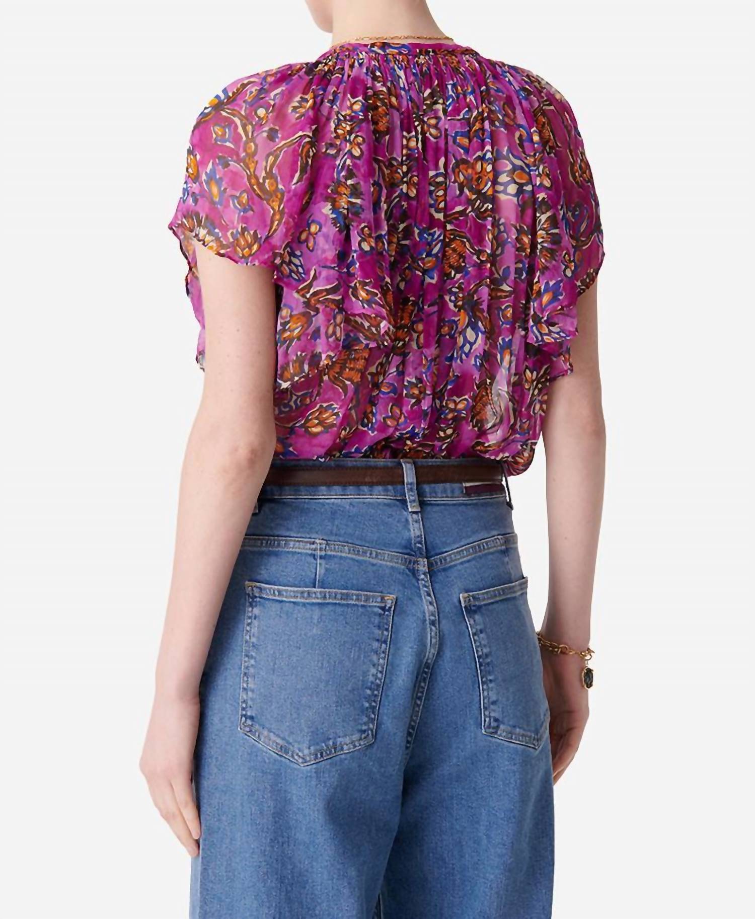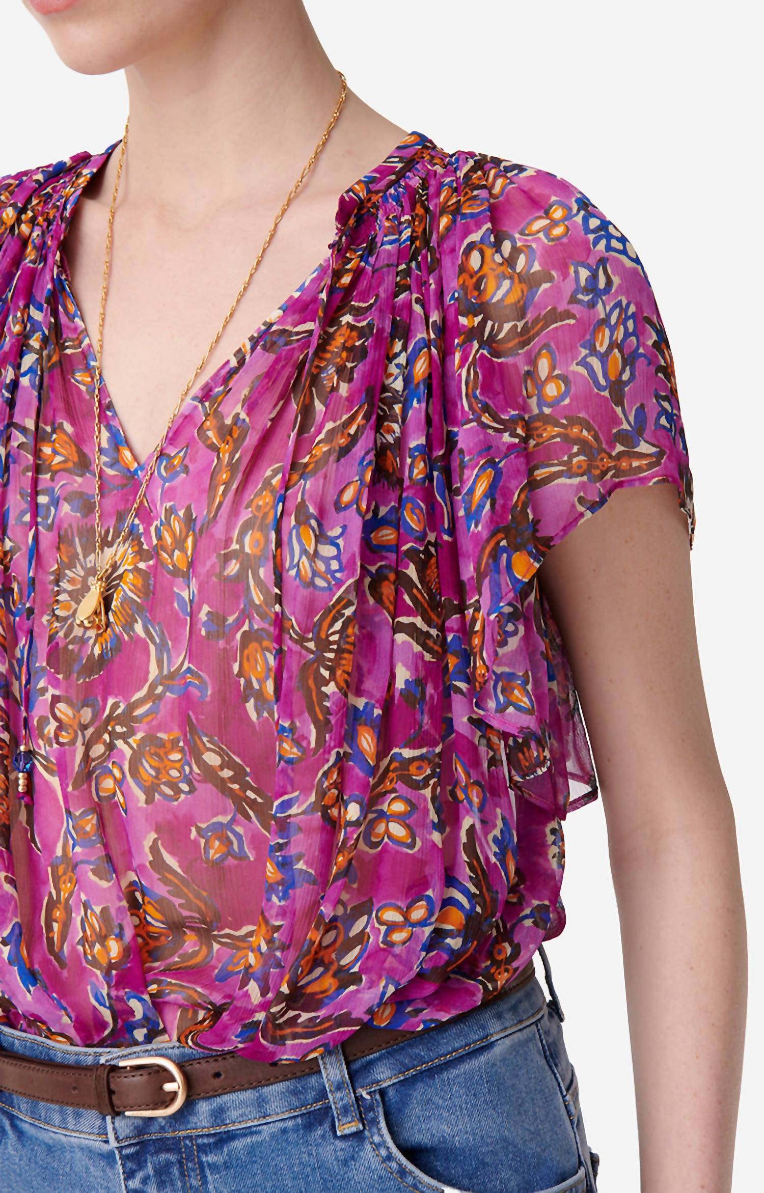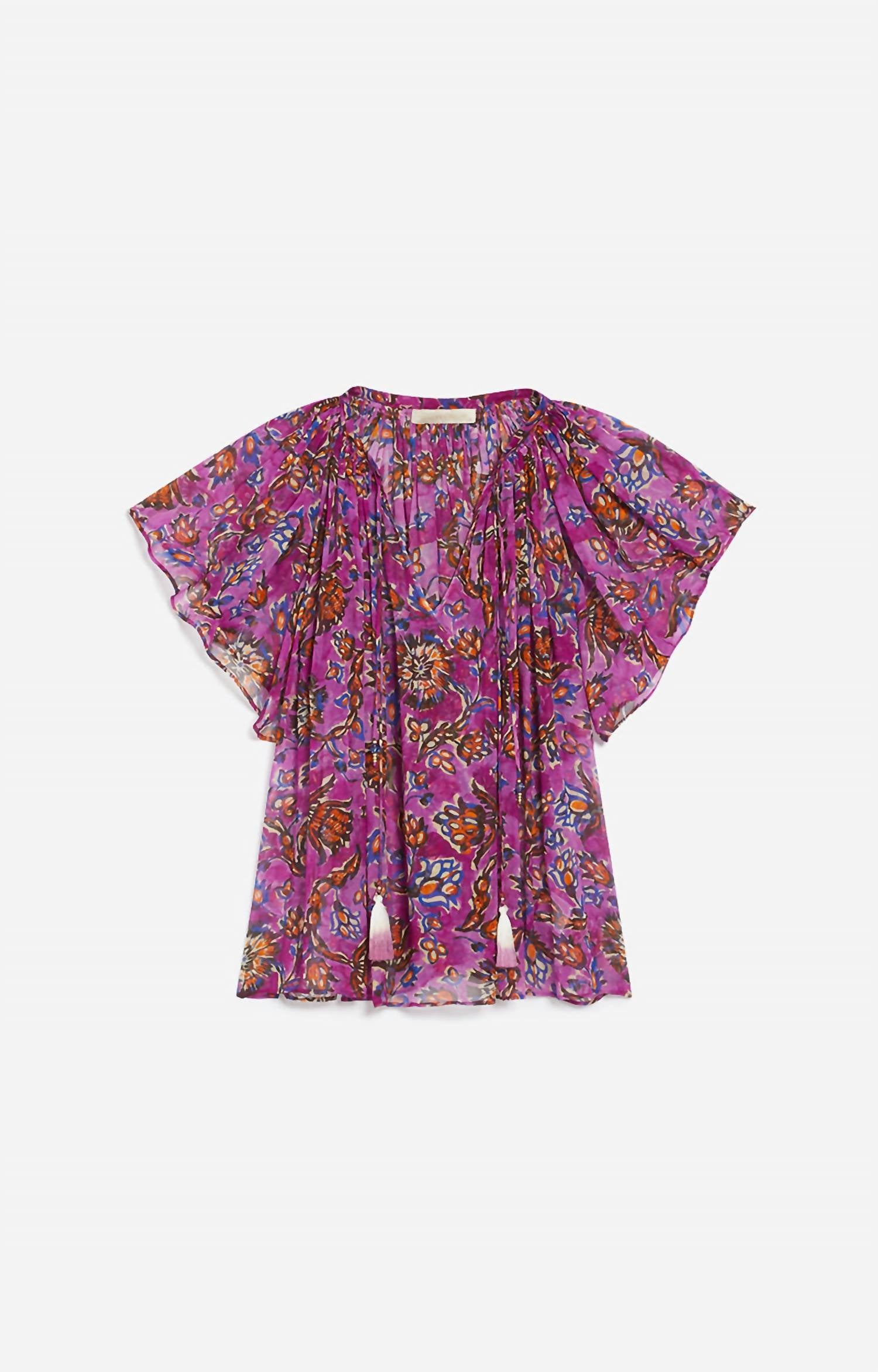 A timeless blouse that will never go out of style. Crafted from 100% viscose, this blouse features a lightweight, short sleeve design with a patterned aesthetic. The top showcases a V-neck with an elegant tie neckline adorned with tassels. Closure: Pull on.