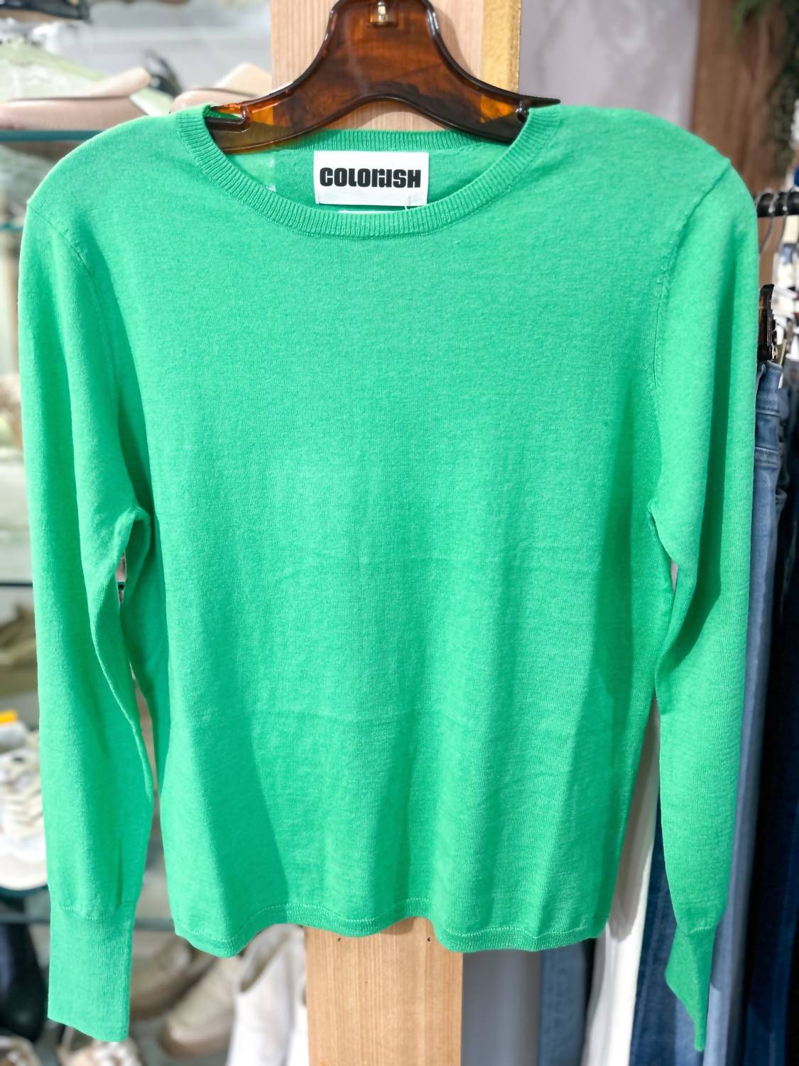 A long sleeve top you can wear with denim, skirts, well... just about anything! The Clio Fitted Crew by Colorush redefines luxury with its solid pattern and a soothing green hue. Carefully crafted for comfort with long sleeves, its pullover style promises ease. This piece, perfect for spring vacations, boasts a soft knit made from responsibly sourced pure cashmere and luxury blends, making it an essential year-round staple.