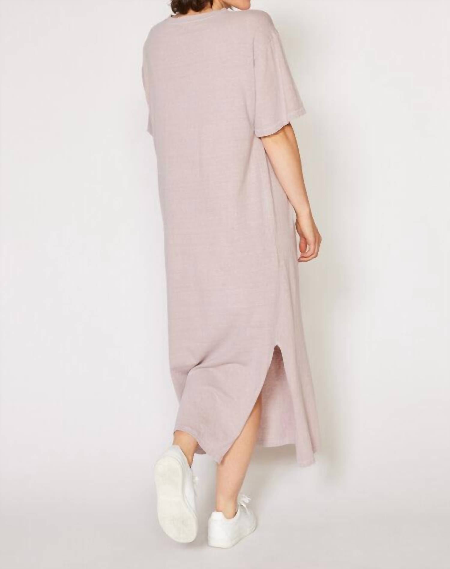 A maxi dress that is just as cute as it is comfortable. Introducing the Led Zeppelin Vintage Lavender Dress by People of Leisure, a timeless tribute to classic rock and sustainable fashion. This women's maxi dress features short sleeves and a shift silhouette, crafted from 100% cotton for a soft, breathable feel. In Lavender Gray with a graphic pattern, it celebrates the iconic spirit of Led Zeppelin. Closure is pull on for easy wear, and while specific care instructions aren't provided, the fabric’s natural attributes promise ease of maintenance.
