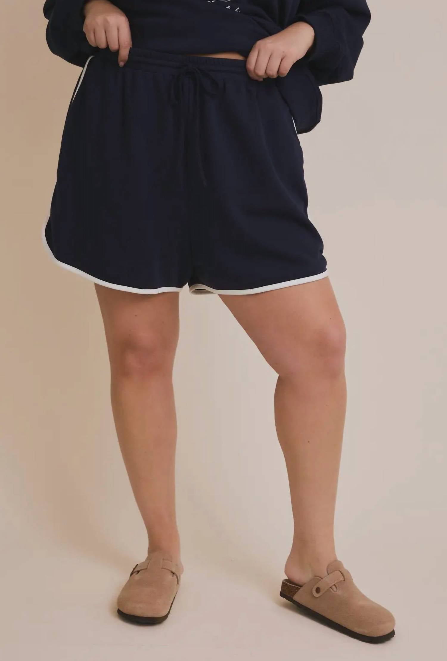 Fit to perfection, we love these high-waist shorts and you will too. Elevate your summer wardrobe with the Laken High Rise Shorts by GILLI, designed for women who appreciate minimalist style. These navy high-waisted shorts feature a playful patterned look with a white side stripe and convenient pockets, offering both style and practicality. Closure: Pull on. Care: Machine wash. Perfect for vacations, these shorts are a versatile addition to your summer collection.