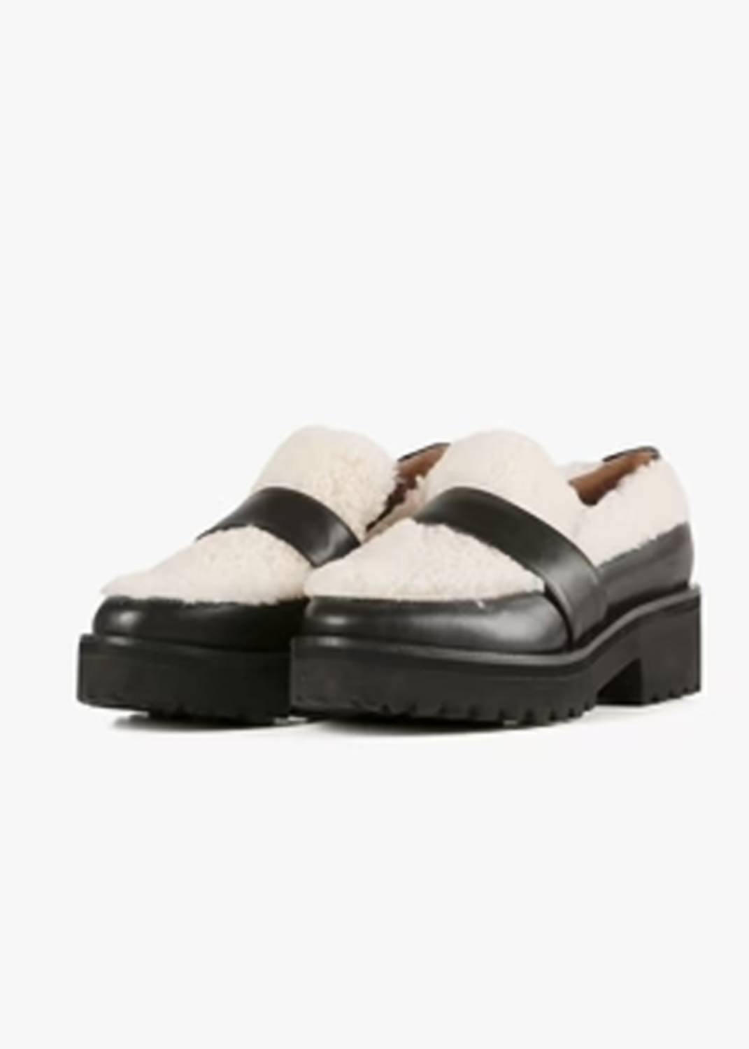 A preppy yet feminine take on the classic loafer. Crafted with a kid & cow leather upper, these loafers feature a plush ivory sherpa and a stylish platform micro lug sole for added height and flair. Lined and cushioned with pig skin, they ensure comfort with every step.