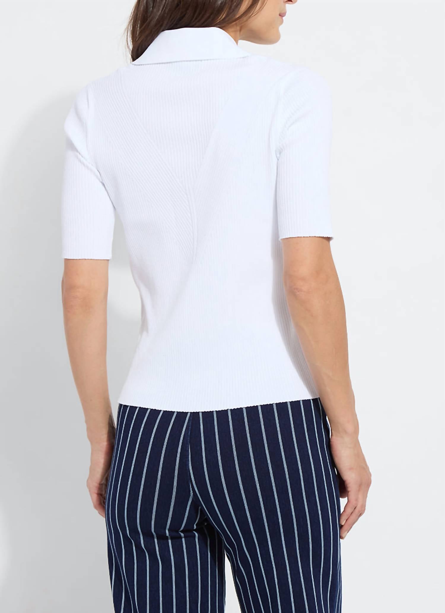 This classic, short sleeve tee will be your go-to staple this season and beyond. Introducing the Ribbed Knit Polo by Lysse, a perfect addition to your summer wardrobe with its minimalist, vacation-ready style. This women's textured tee features short sleeves and a classic collar, offering a versatile look for warm days. Made from a comfortable viscose blend, this piece comes in a timeless white and has a convenient pull-on closure. Enjoy pairing it effortlessly with your favorite summer bottoms.