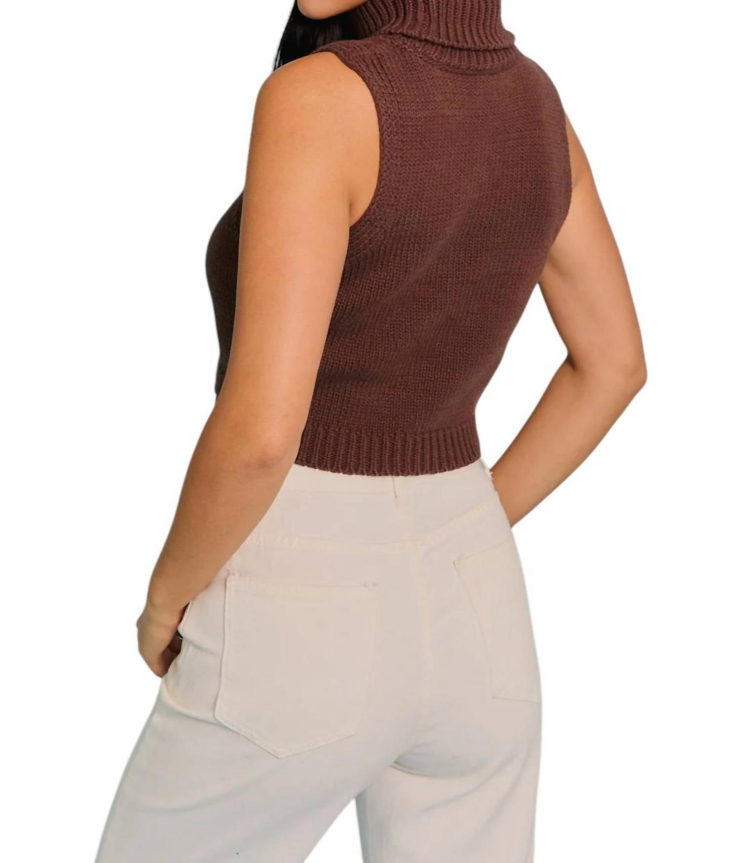 This turtleneck sleeveless knit top is cropped and made from a blend of 60% cotton and 40% acrylic for a comfortable fit.
