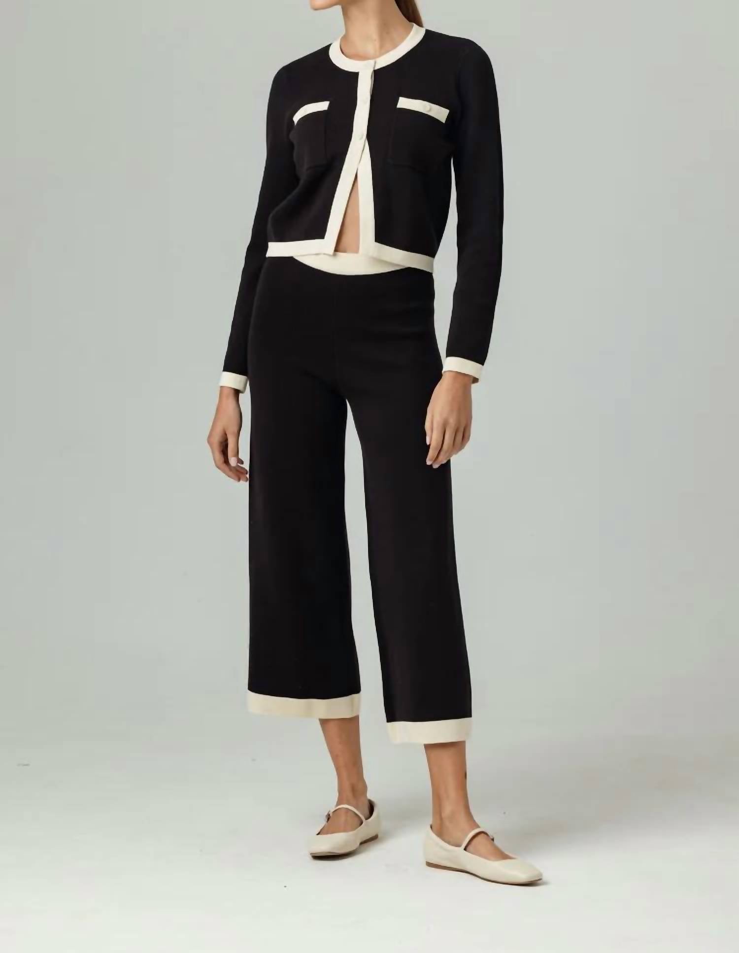 Throw this adorable cardigan over any cami or tank top. Introducing the Amora Cardigan Top by Sundays, a chic addition to your wardrobe with its luxe 100% cotton yarn. This stylish black cardigan features long sleeves and a crewneck, complemented by a contrast cream finish on the edges and subtle shell buttons. With a slim fit and an asymmetric placket, it finishes just past the waist, allowing you to style it alone or layered for a casually cool look. Care is straightforward: machine wash and line dry for hassle-free maintenance.