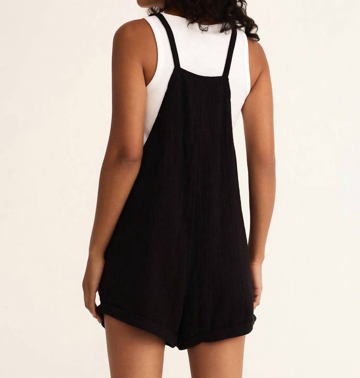 It doesn't take much for this one piece to look effortlessly cool. Add some statement jewelry to dress it up, or throw on some sneakers for a more casual vibe. Embrace effortless style with the Montague Airy Romper by Z Supply, a minimalist piece perfect for summer getaways. Sleeveless with a scoopneck, this romper is crafted from 100% crinkle cotton gauze, offering a naturally textured, airy feel. The playful short length features a 3 1/4" shoulder measurement, adjustable spaghetti straps, and convenient patch pockets for everyday essentials. Originating from a flexible fit design, it includes a tie closure for a customized feel, and is easy to maintain with machine wash cold and line dry care instructions.