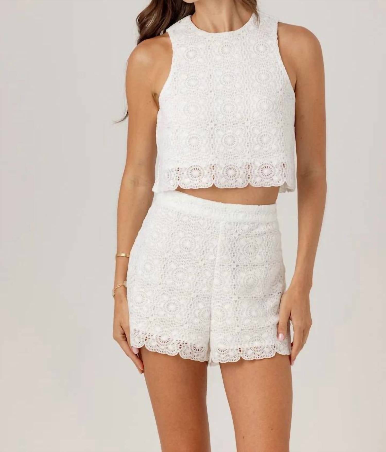 Pair this crop top with your favorite high-waisted jeans or maxi skirt. Introducing the Chantae Top by Sundays, a chic sleeveless design perfect for summer styling. Crafted from polyester, this white crop top features a high-crew neckline, an invisible back zipper closure, and a subtly patterned look. The boxy, slightly cropped silhouette, finishing at about the belly button, ensures modern edge and comfort while being bra-friendly. Care is made simple with machine wash instructions, making it an ideal choice for vacation or even Thanksgiving gatherings.