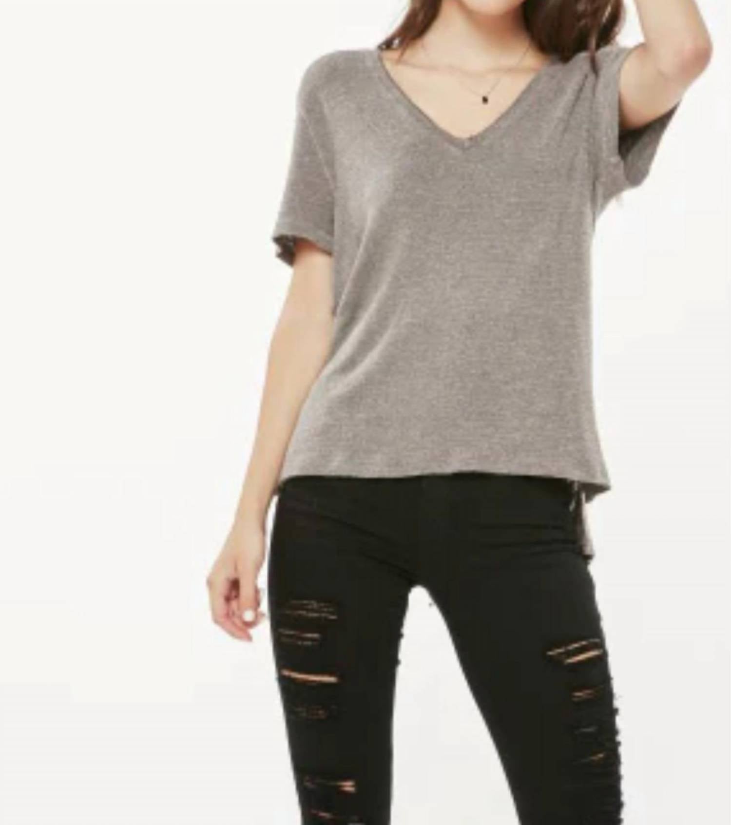 This classic, short sleeve tee will be your go-to staple this season and beyond. Discover the Kaycee Textured Short Sleeve Tee by PROJECT SOCIAL T, a streetwear essential for effortless style. Designed in a solid gray shade, this women's tee features a chic V-neck and is perfect for summer occasions. Crafted from comfortable cotton, it has a pull-on closure for easy wear. Care for it with a simple hand wash and line dry.